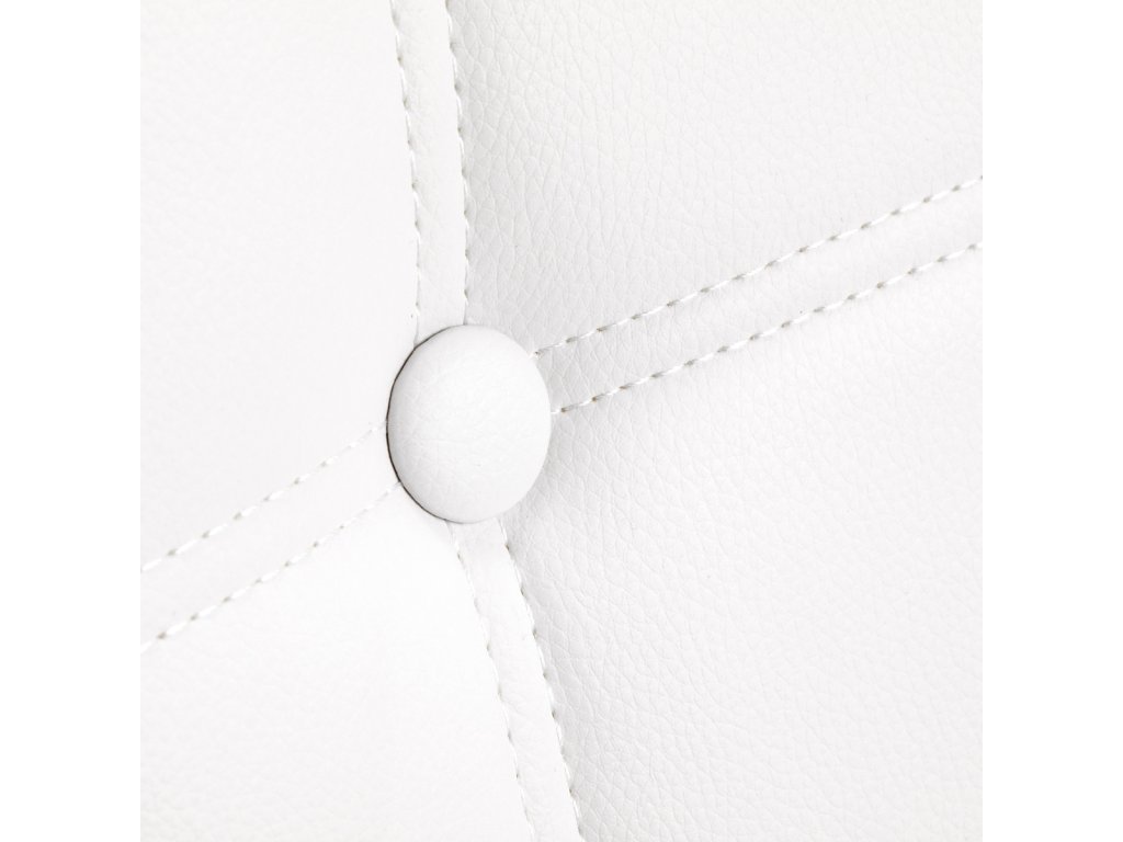 Die ergonomisch geformte Rückenlehne und die gepolsterte Sitzfläche sorgen für komfortables Sitzen auch bei längeren Anwendungen. Der Sitz ist mit einem hochwertigen Kunstlederbezug in Weiß versehen, der nicht nur elegant wirkt, sondern sich auch besonders leicht reinigen lässt – ideal für anspruchsvolle Umgebungen wie den Schönheitssalon, wo Hygiene besonders wichtig ist.