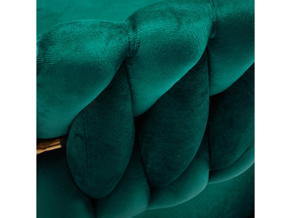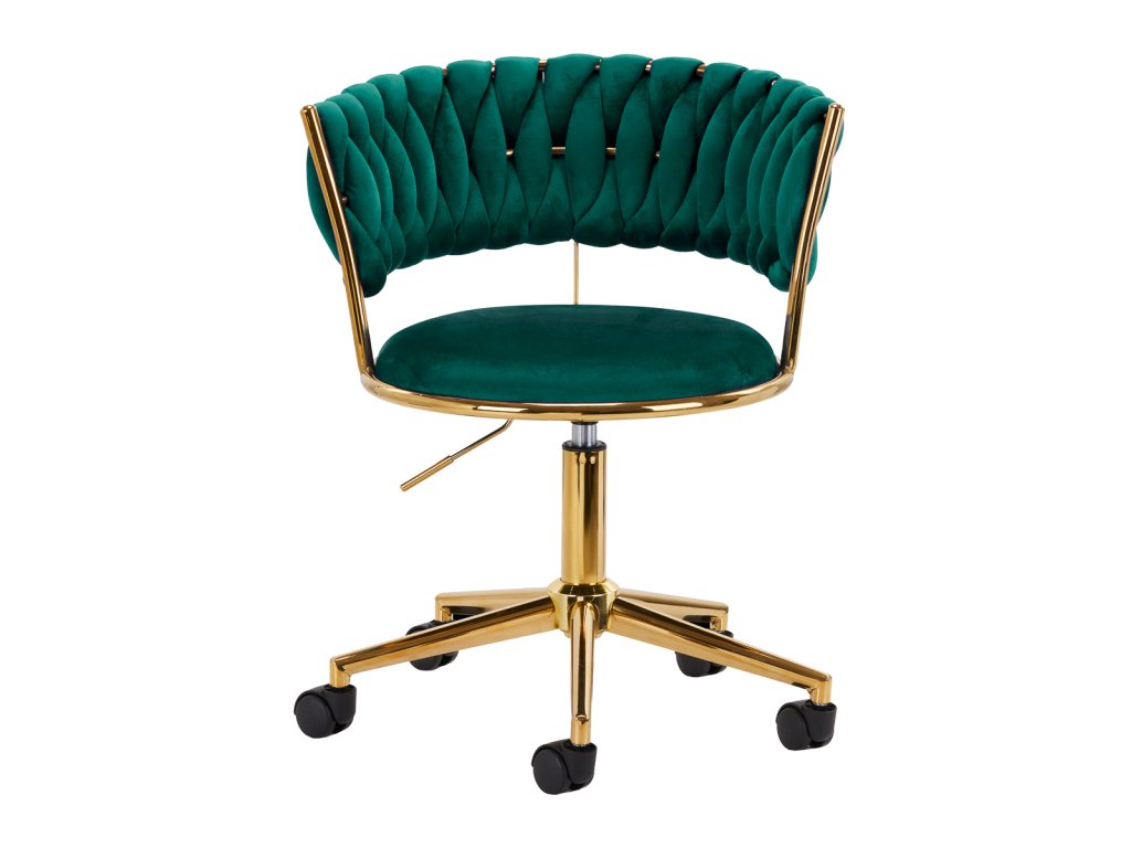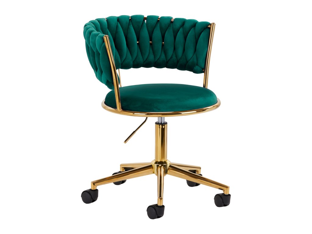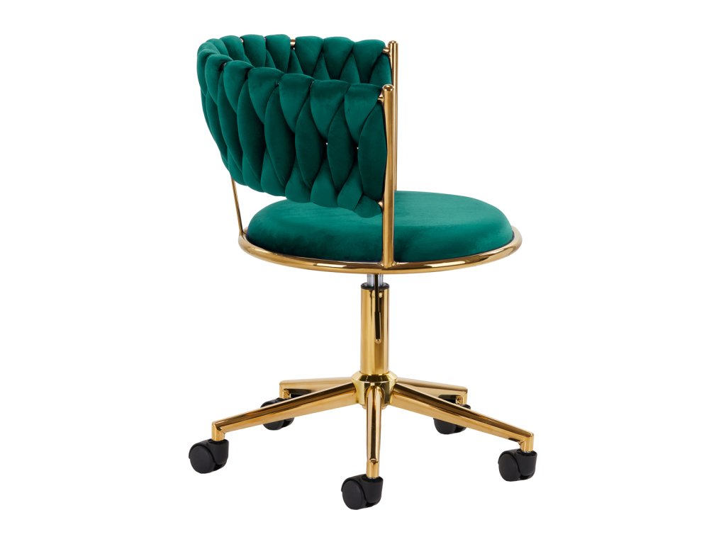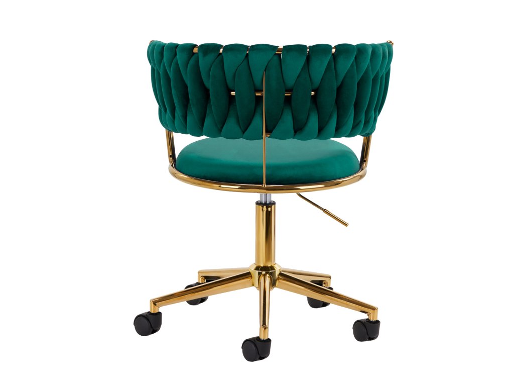Die weiche Samtpolsterung in einem eleganten Grünton fühlt sich angenehm an und sorgt gemeinsam mit den goldfarbenen Akzenten für einen luxuriösen Look. Die ergonomisch geformte Rückenlehne unterstützt eine gesunde Haltung, was besonders bei längeren Behandlungen im Kosmetikstudio von Vorteil ist.
