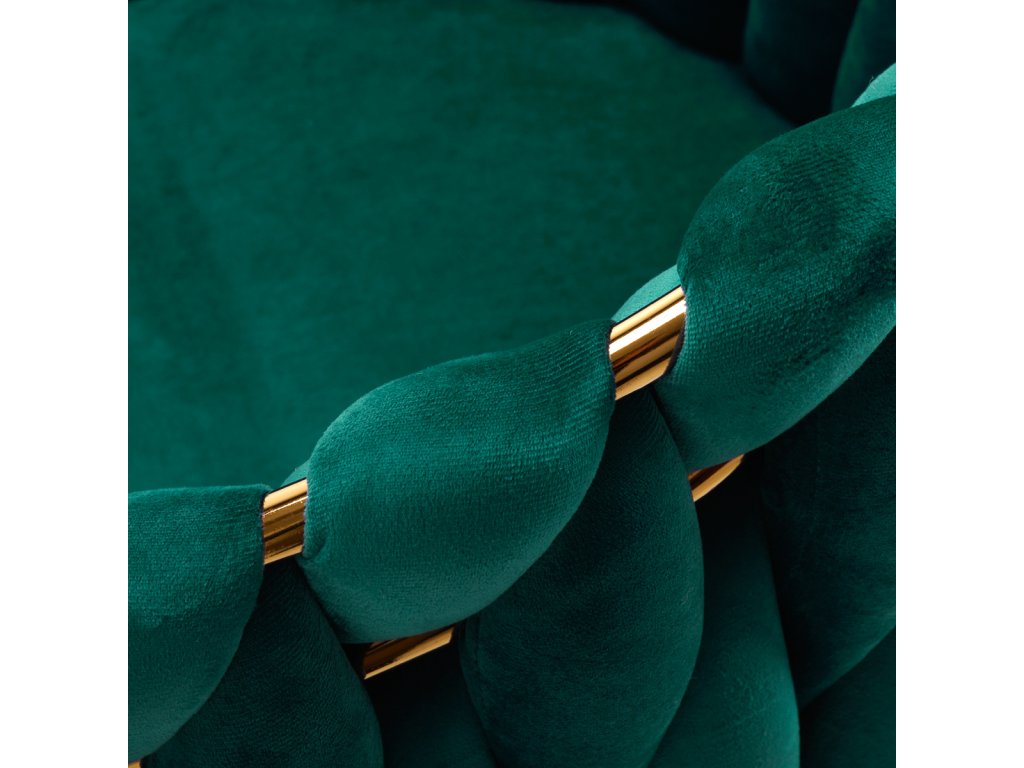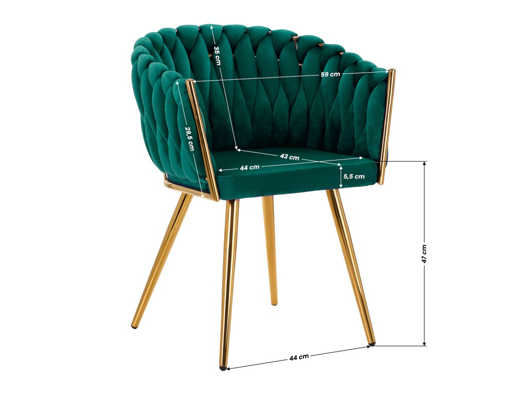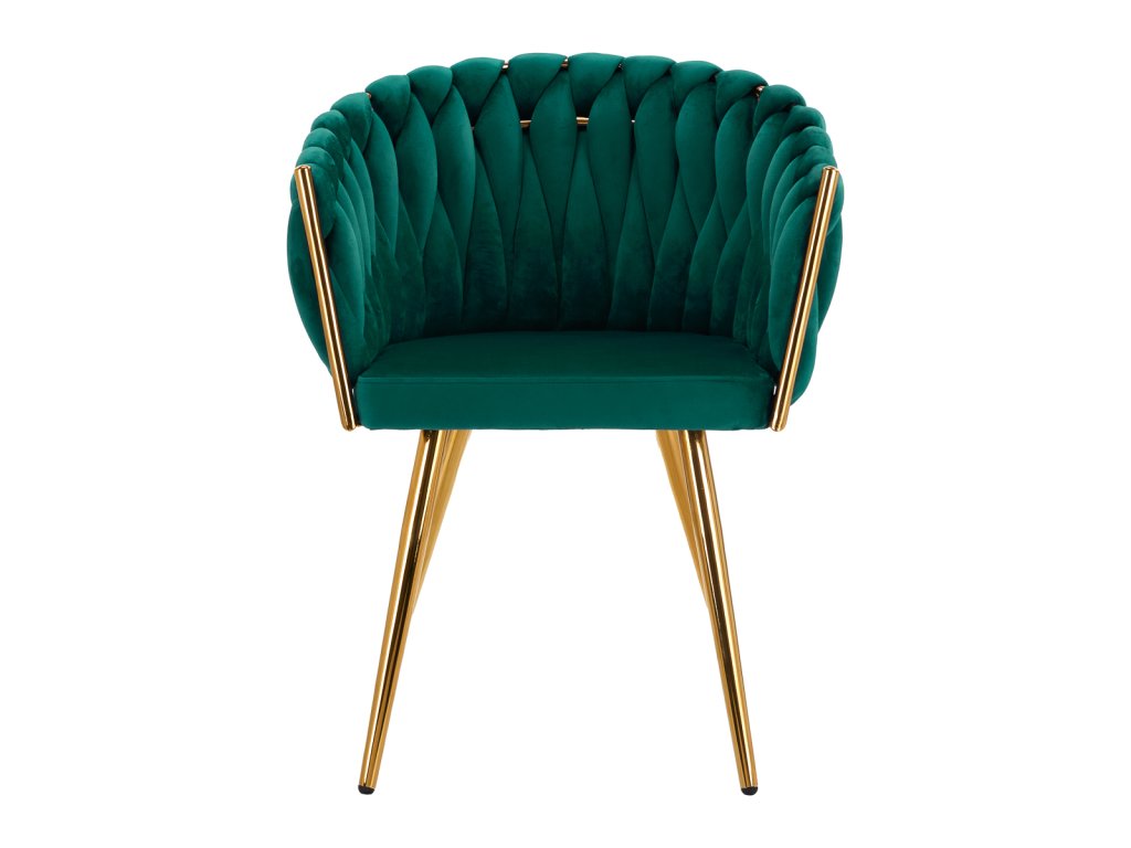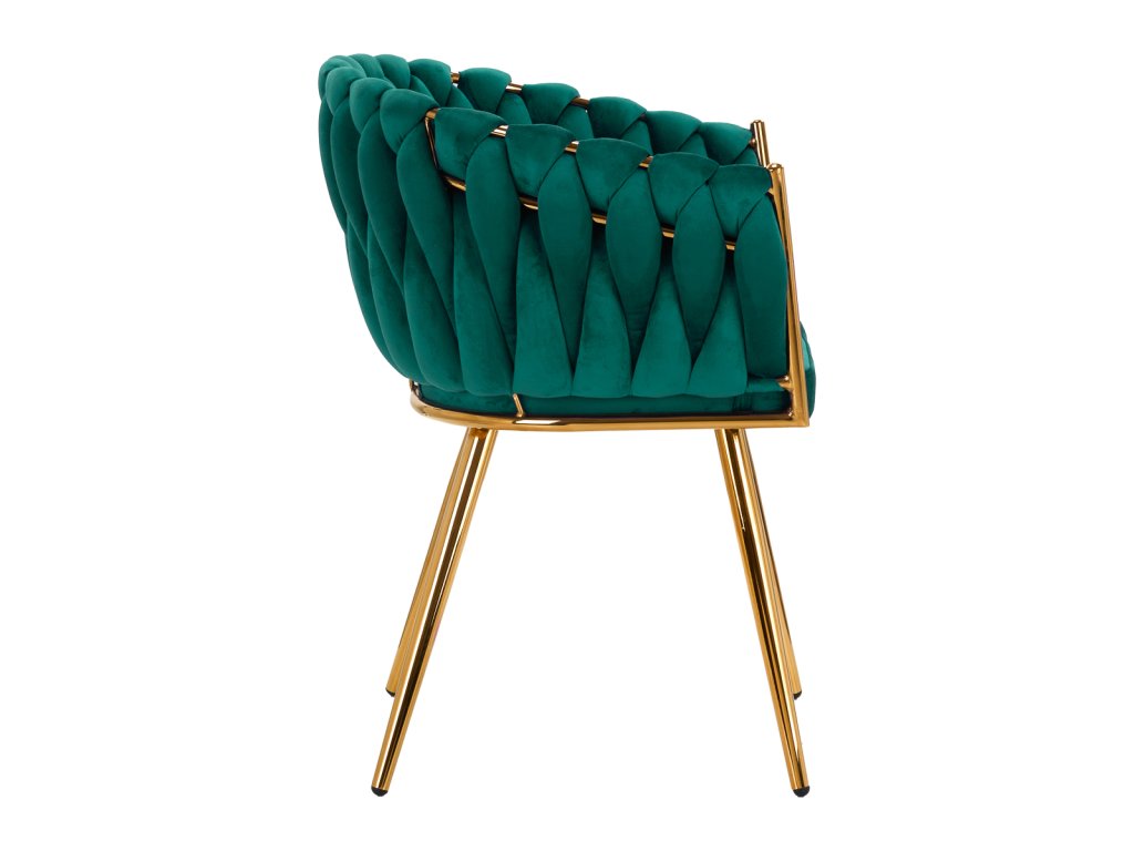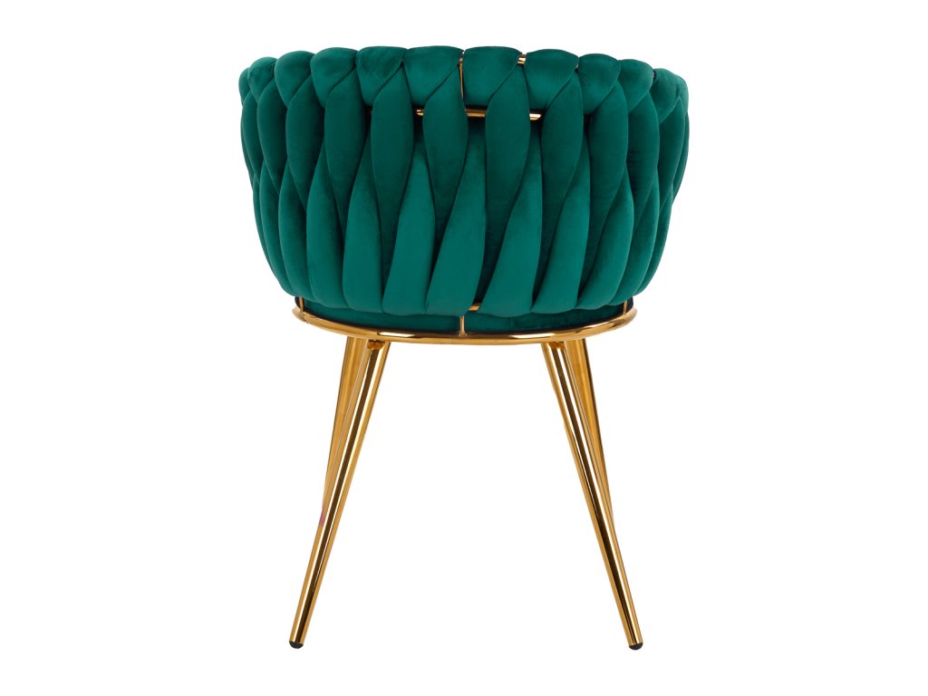 Die robusten Metallbeine in Goldtönen sind mit Schutzvorrichtungen ausgestattet, die Ihren Boden schonen – ideal für stark frequentierte Kosmetikbereiche. Das geflochtene Design an der Rückenlehne und die feine Verarbeitung machen diesen Stuhl für Kosmetiksalons zu einem wahren Blickfang.