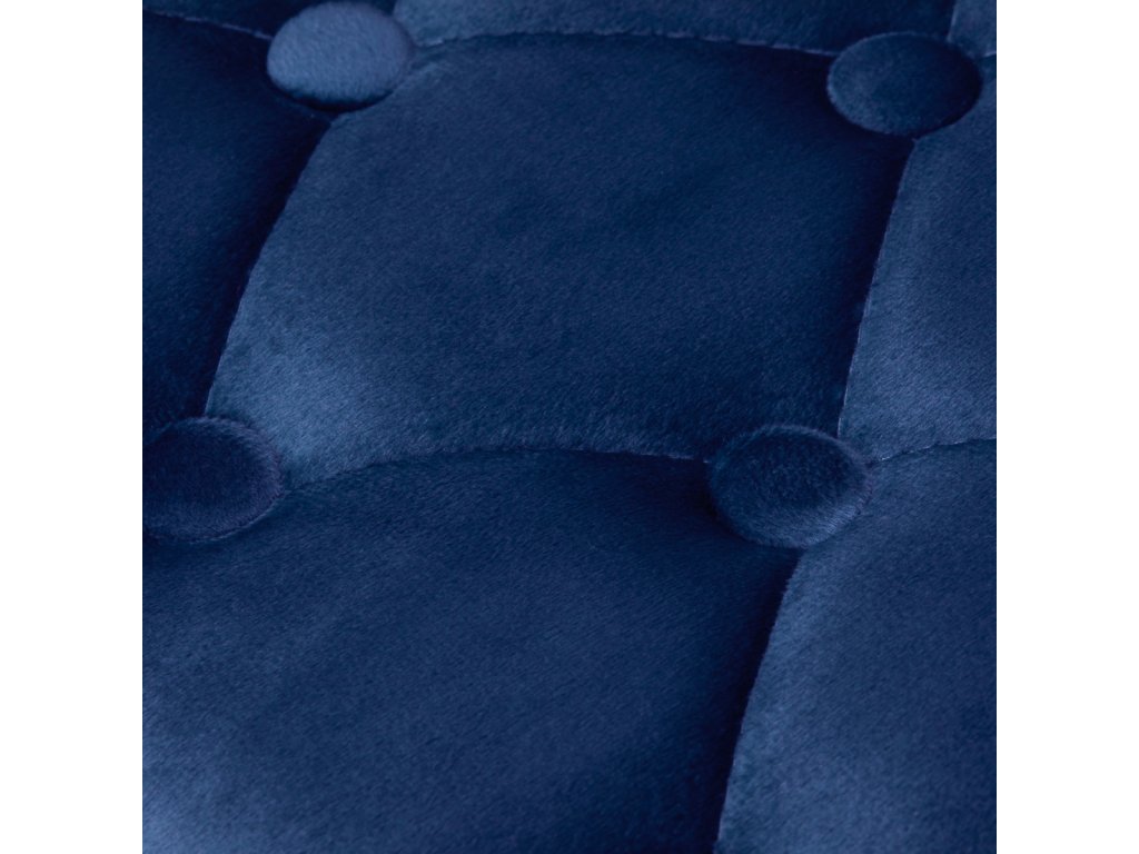Die elegante Samtpolsterung in Marineblautönen ist nicht nur optisch ein Highlight, sondern auch besonders angenehm bei längeren Sitzungen. Die dekorative Steppung unterstreicht die edle Ausstrahlung, während der stabile Metallrahmen in Gold für einen luxuriösen Akzent sorgt – perfekt abgestimmt auf moderne Kosmetikmöbel. Dank der funktionalen Rollen lässt sich der Stuhl mühelos im Kosmetikstudio oder Empfangsbereich bewegen.