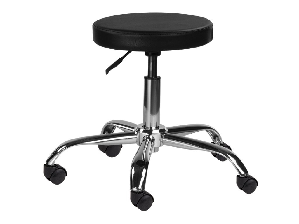 Die niedrige hydraulische Höhenverstellung von 43 bis 56 cm macht diesen Hocker besonders geeignet für Tätigkeiten in sitzender Position. Der drehbare Sitz bietet Bewegungsfreiheit, während das stabile fünfsternige Fußkreuz in Silber für Sicherheit und Standfestigkeit im täglichen Salonbetrieb sorgt.
