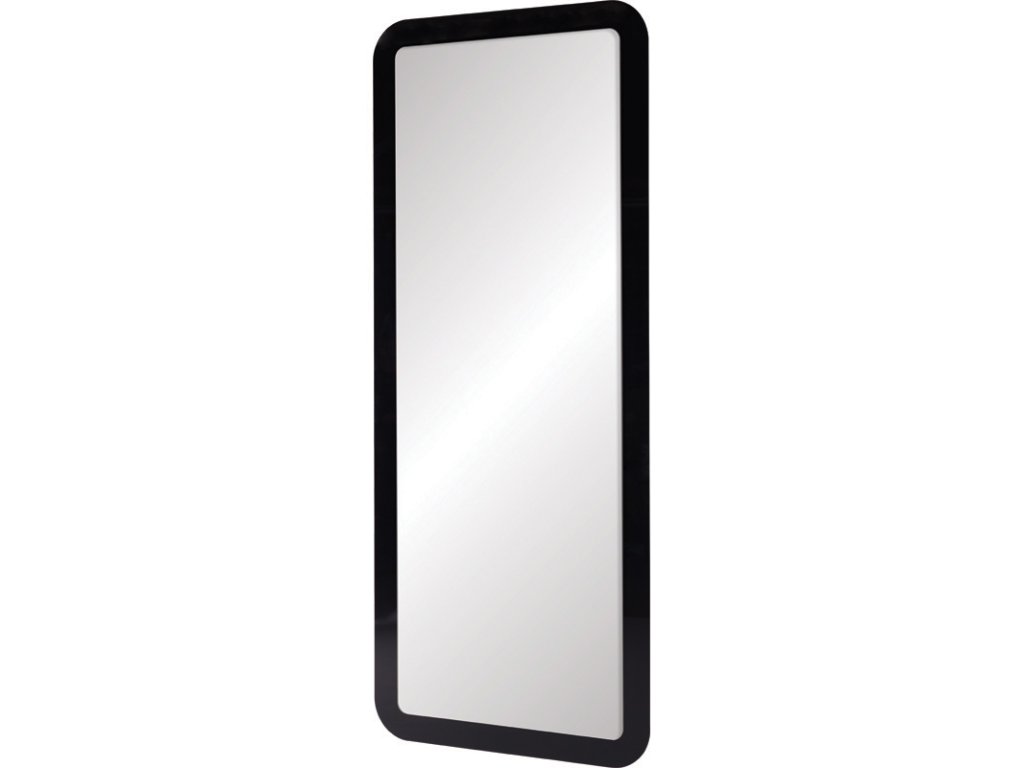 Der Rahmen besteht aus hochwertigem schwarzem PMMA-Kunststoff mit glänzender Oberfläche. Die sanft geschwungene Form verleiht dem Spiegel eine dezente Dynamik und hebt ihn optisch von klassischen, geradlinigen Modellen ab. Trotz seiner Schlichtheit wirkt der Spiegel äußerst stilvoll und hochwertig.