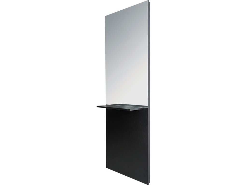 Die Konstruktion besteht aus einer laminierten Möbelplatte, die für den professionellen Einsatz im Salon konzipiert ist. Serienmäßig ist die Friseurstelle in mattem Schwarz ab Lager verfügbar. Auf Wunsch kann sie gegen Aufpreis auch in anderen Dekoren aus unserem Sortiment gefertigt werden.