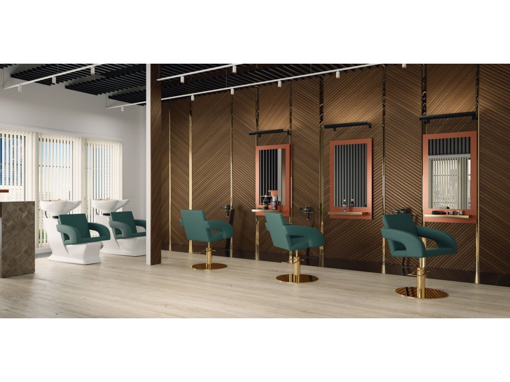Standardmäßig wird das Modell in mattschwarzer Polsterung geliefert, kombiniert mit einer schwarzen oder weißen COSMO-Keramikschüssel, die sofort lieferbar ist. Für individuelle Salonkonzepte kann die Polsterung in zahlreichen weiteren Farben gefertigt werden – Farbvarianten sind auf Bestellung erhältlich und bieten die Möglichkeit, Sitzfläche, Rückenlehne und Armlehnen ganz nach Wunsch zu kombinieren.