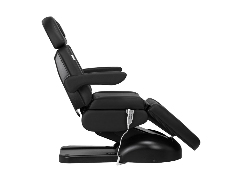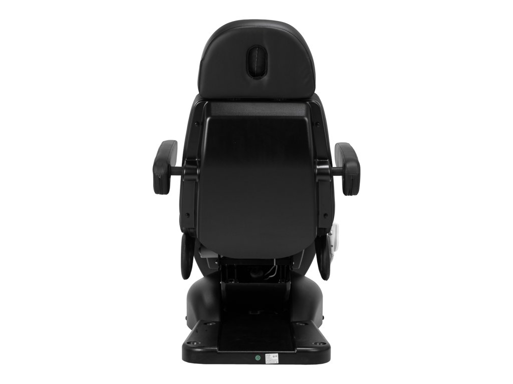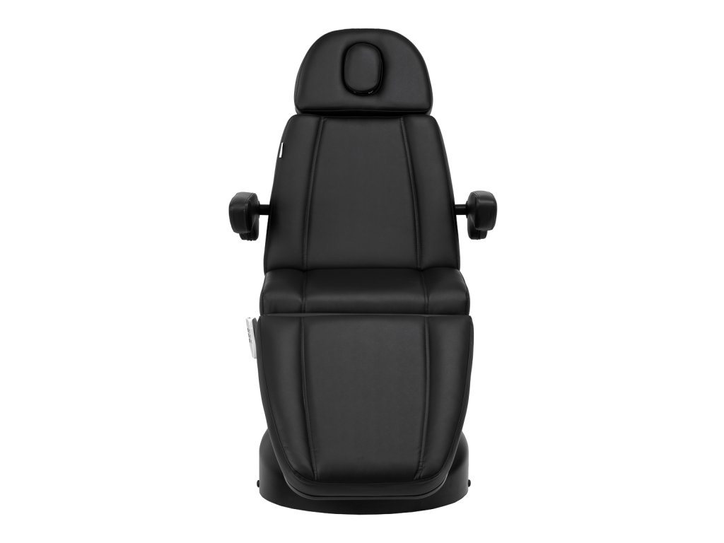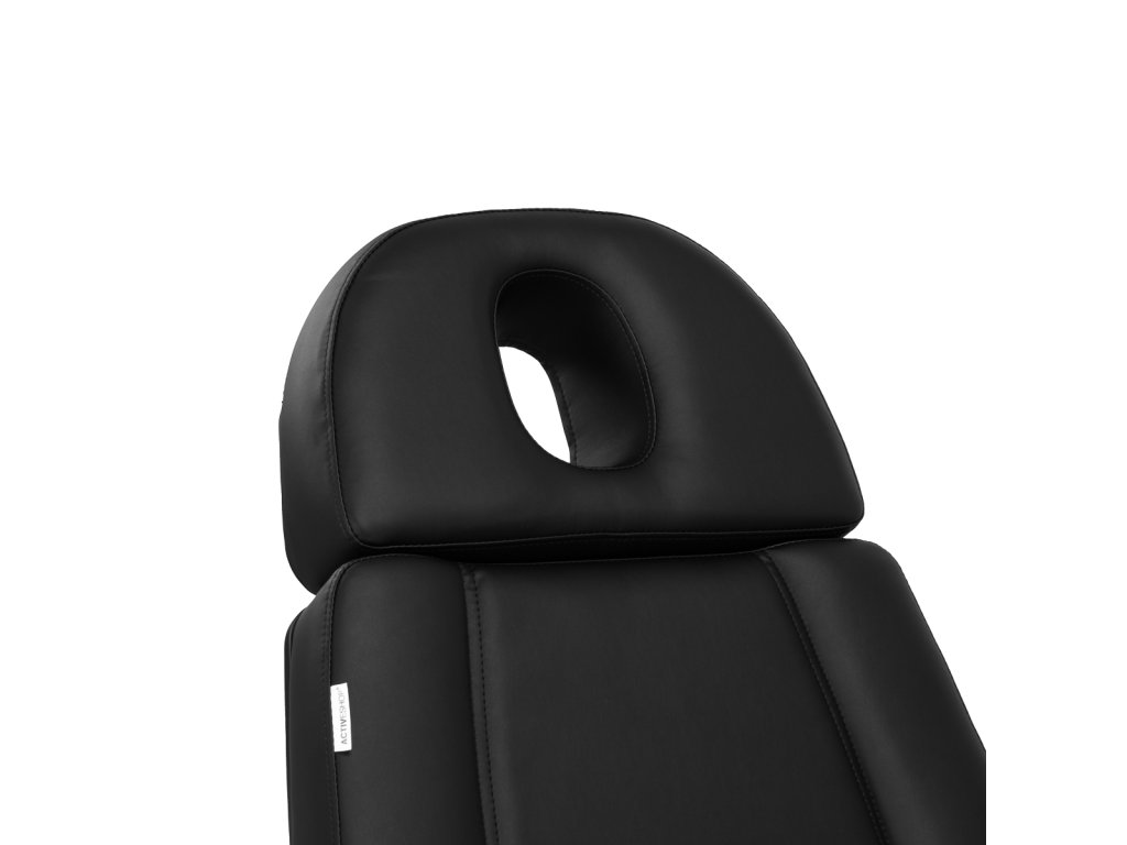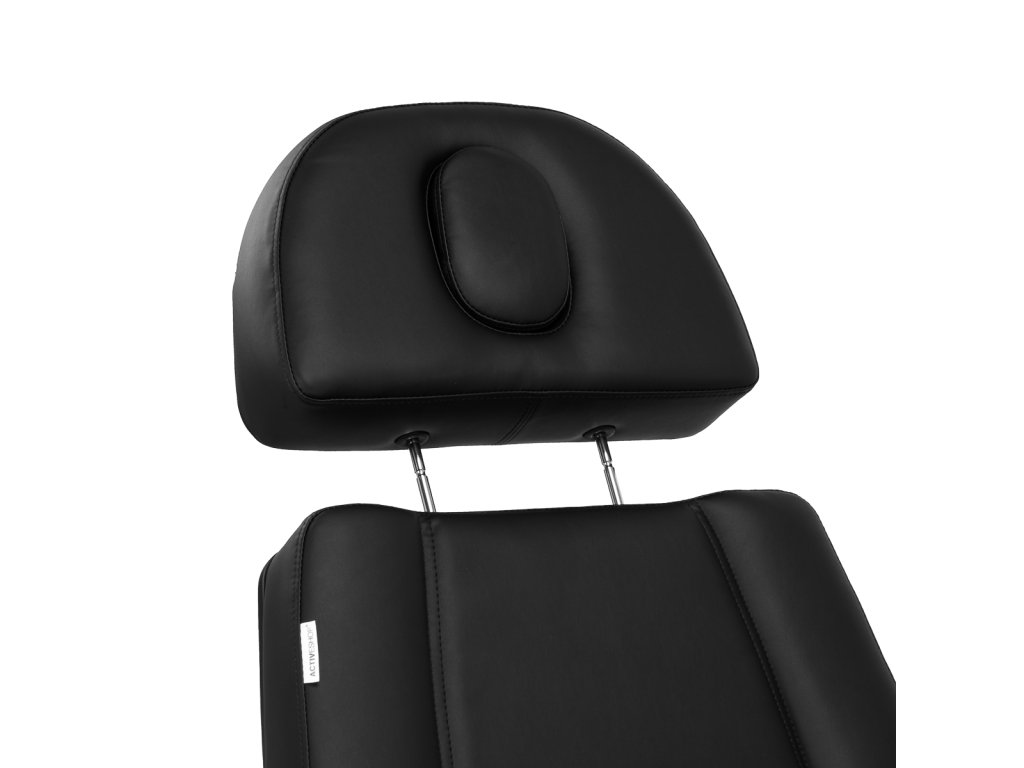 Die breite Sitzfläche sorgt für Komfort auch bei Langzeitbehandlungen. Leicht zerlegbare, bewegliche Armlehnen mit der Möglichkeit der Drehung im Bereich von 180° erleichtern dem Kunden das Einnehmen auf dem Stuhl und ermöglichen dem ausführenden Personen einen freien Zugang. Der Sitz ist zudem mit einer verstellbaren Kopfstütze ausgestattet, die vor allem für größere Kunden eine stabile Kopfstütze und zusätzlichen Komfort garantiert.
