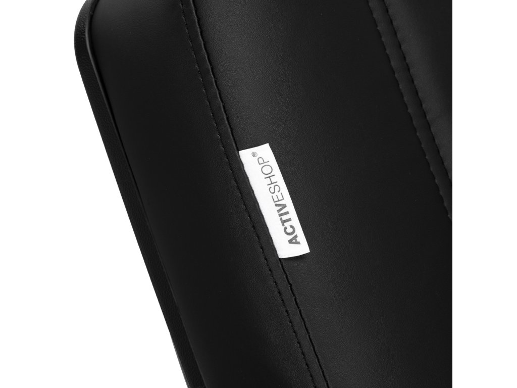 Die solide Konstruktion des Stuhls sorgt für Stabilität und Langlebigkeit im täglichen Gebrauch. Der Sitz ist mit Schaumstoff in entsprechend ausgewählter Härte gefüllt und garantiert Komfort auch bei Langzeitbehandlungen. Die Polsterung aus angenehm anzufassendem Kunstleder in Schwarztönen verleiht dem Ganzen einen professionellen Look, ist gleichzeitig feuchtigkeitsbeständig und leicht zu reinigen. Das strapazierfähige Untergestell garantiert Stabilität, und die sorgfältig profilierten Säume betonen den modernen Charakter der Möbel und erhöhen die Ergonomie des Sitzes.