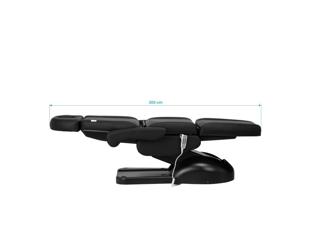 Die Höhe des Sitzes ist im Bereich von 65 cm bis 84 cm verstellbar, was eine bequeme Anpassung der Position an die Körpergröße sowohl des Kunden als auch der Person, die die Behandlung durchführt, ermöglicht. Im voll ausgefahrenen Zustand erreicht der Stuhl eine Länge von über 2 Metern und bietet so eine komfortable Unterstützung für den Körper – auch bei Eingriffen, die eine liegende Position erfordern. Dank dieser Parameter funktioniert das Gerät bei einer Vielzahl von Behandlungen, sowohl in der Pflege als auch in der Spezialistenbehandlung, und garantiert die Ergonomie der Arbeit und einen hohen Servicestandard.