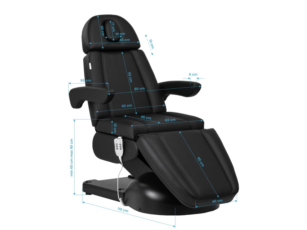 Der elektrische Kosmetikliege Azzurro Lux ist mit 3 Aktuatoren ausgestattet, die über eine kabelgebundene Fernbedienung gesteuert werden und eine reibungslose und präzise Einstellung der einzelnen Elemente ermöglichen. Es zeichnet sich durch seine Stabilität und Vielseitigkeit aus, was es perfekt für Schönheitssalons, Podologie oder ästhetische Medizin macht. Die intuitive Bedienung und eine Vielzahl von Einstellmöglichkeiten ermöglichen es Ihnen, den Stuhl einfach an die Bedürfnisse sowohl des Kunden als auch der Person, die die Behandlung durchführt, anzupassen.
