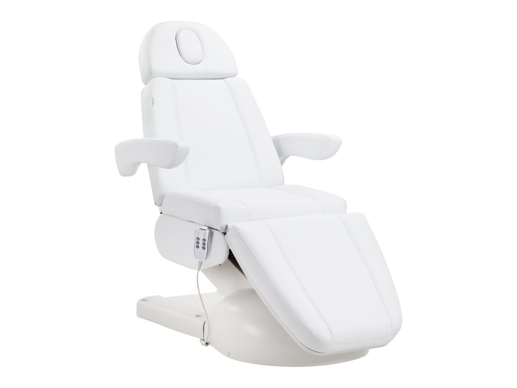 Die breite Sitzfläche sorgt für Komfort auch bei Langzeitbehandlungen. Leicht zerlegbare, bewegliche Armlehnen mit der Möglichkeit der Drehung im Bereich von 180° erleichtern dem Kunden das Einnehmen auf dem Stuhl und ermöglichen dem ausführenden Personen einen freien Zugang. Der Sitz ist zudem mit einer verstellbaren Kopfstütze ausgestattet, die vor allem für größere Kunden eine stabile Kopfstütze und zusätzlichen Komfort garantiert.
