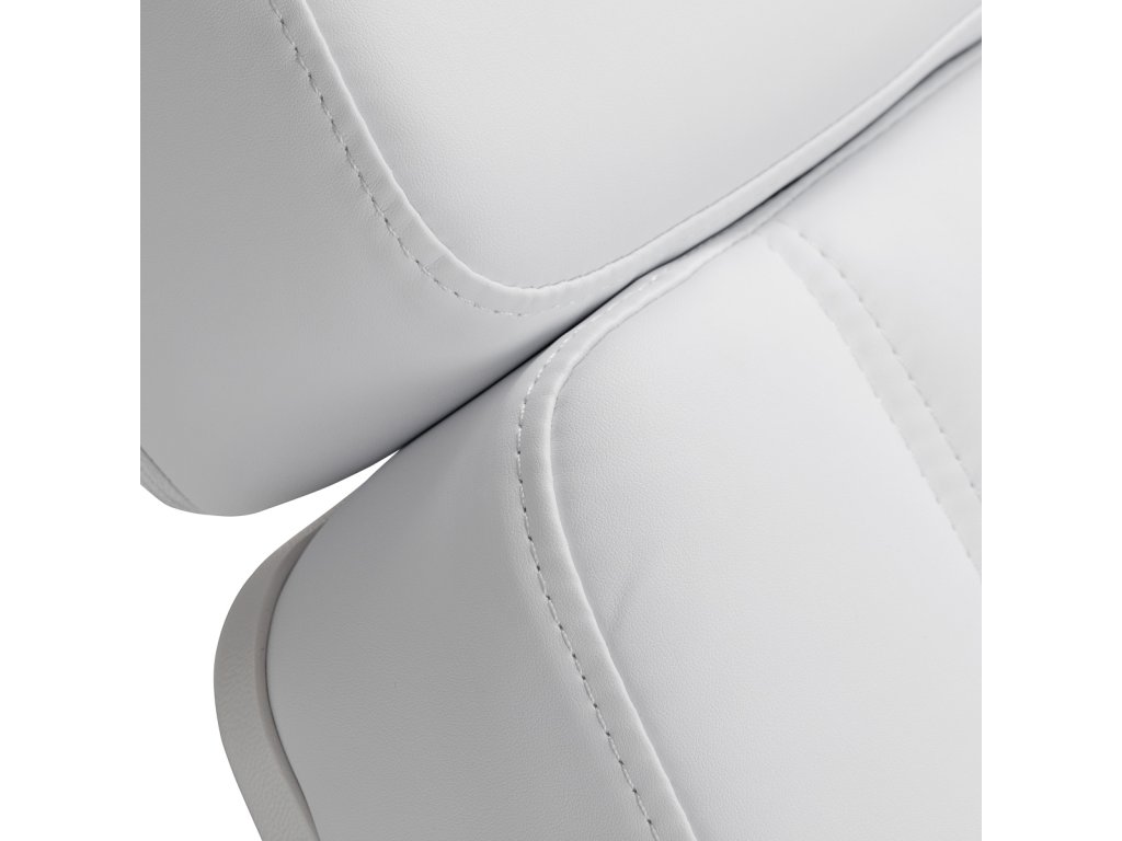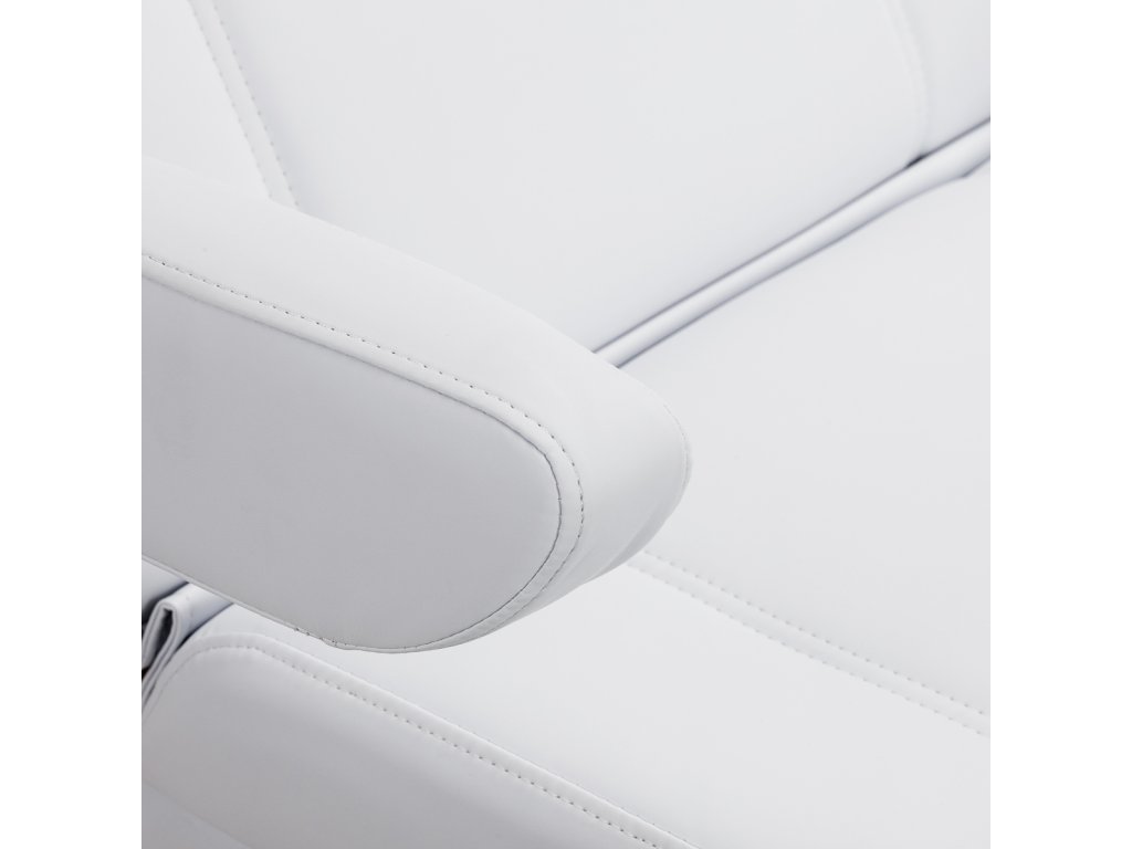 Die solide Konstruktion des Stuhls sorgt für Stabilität und Langlebigkeit im täglichen Gebrauch. Der Sitz ist mit Schaumstoff in entsprechend ausgewählter Härte gefüllt und garantiert Komfort auch bei Langzeitbehandlungen. Die Polsterung aus angenehm anzufassendem Kunstleder in Weißtönen verleiht dem Ganzen einen professionellen Look, ist gleichzeitig feuchtigkeitsbeständig und leicht zu reinigen. Das strapazierfähige Untergestell garantiert Stabilität, und die sorgfältig profilierten Säume betonen den modernen Charakter der Möbel und erhöhen die Ergonomie des Sitzes.
