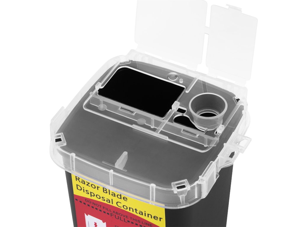 Der Behälter ist für die Sammlung von Abfällen mit scharfen Enden und Kanten und/oder organischen medizinischen Abfällen geeignet.