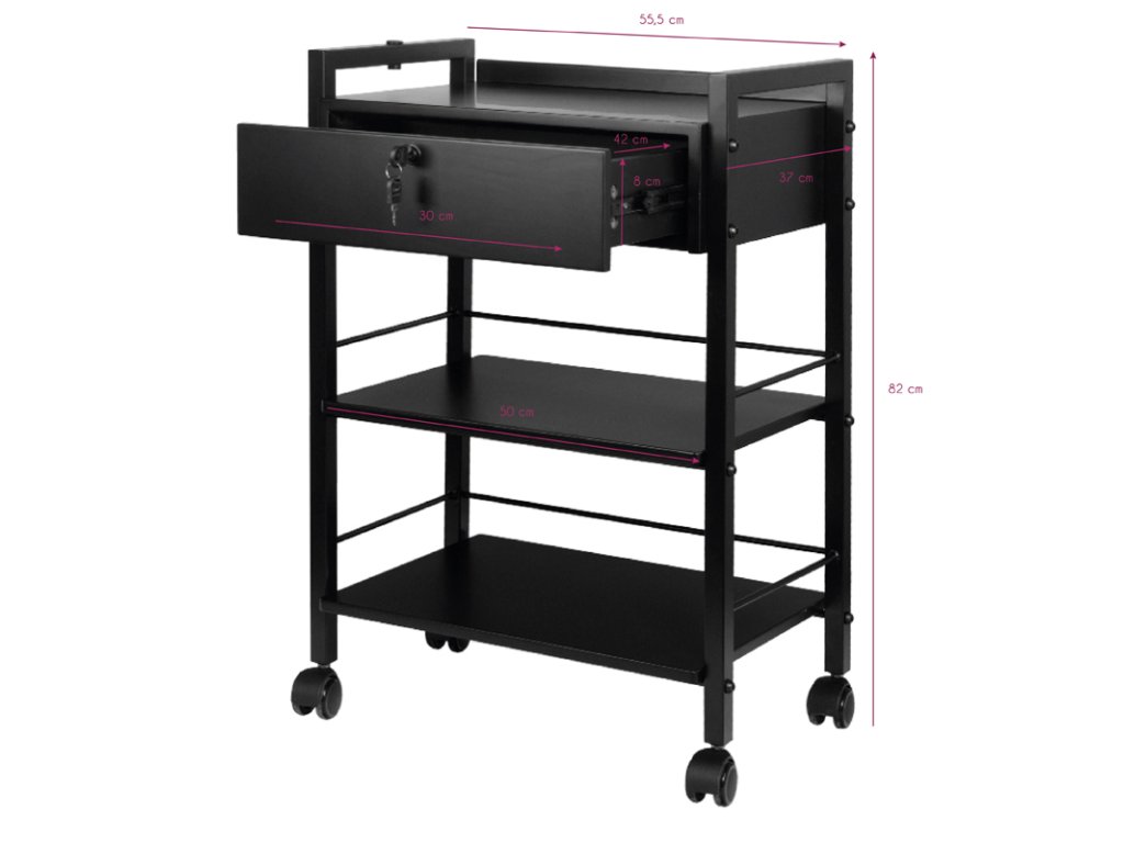 BEISTELLWAGEN PRO INK1019A eignet sich für die Aufbewahrung von Tattoo-Zubehör. Dank seiner robusten Stahlkonstruktion garantiert das Produkt eine lange Lebensdauer. Eine Holzschublade ermöglicht es Ihnen, Geräte und Zubehör aufzubewahren. Zwei Glasablagen bieten Platz für alles, was Sie für eine Tattoo-Sitzung benötigen. Es besteht die Möglichkeit, eine Lampe zu befestigen. Technische Daten: - Höhe: 82 cm - Ablage-Abmessungen: 55,5 x37 cm- Gewicht: 21kg