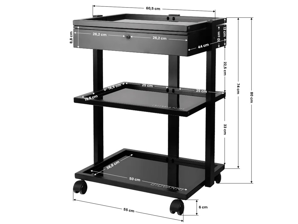 BEISTELLWAGEN PRO INK1040A eignet sich für die Aufbewahrung von Tattoo-Zubehör. Dank seiner robusten Stahlkonstruktion garantiert das Produkt eine lange Lebensdauer. Eine Holzschublade ermöglicht es Ihnen, Geräte und Zubehör aufzubewahren. Die Glasablage ermöglicht, bei der Arbeit mit Pigmenten sauber zu halten. Zwei Glasablagen bieten Platz für alles, was Sie für eine Tattoo-Sitzung benötigen. Es besteht die Möglichkeit, eine Lampe zu befestigen. Technische Daten: - Höhe: 80 cm - Ablage-Abmessungen: 55,5 x37 cm- Schublade-Abmessungen: 55 x44 - Gewicht: 45kg Verpackungsabmessungen: 77x 47,5x26,5 cm