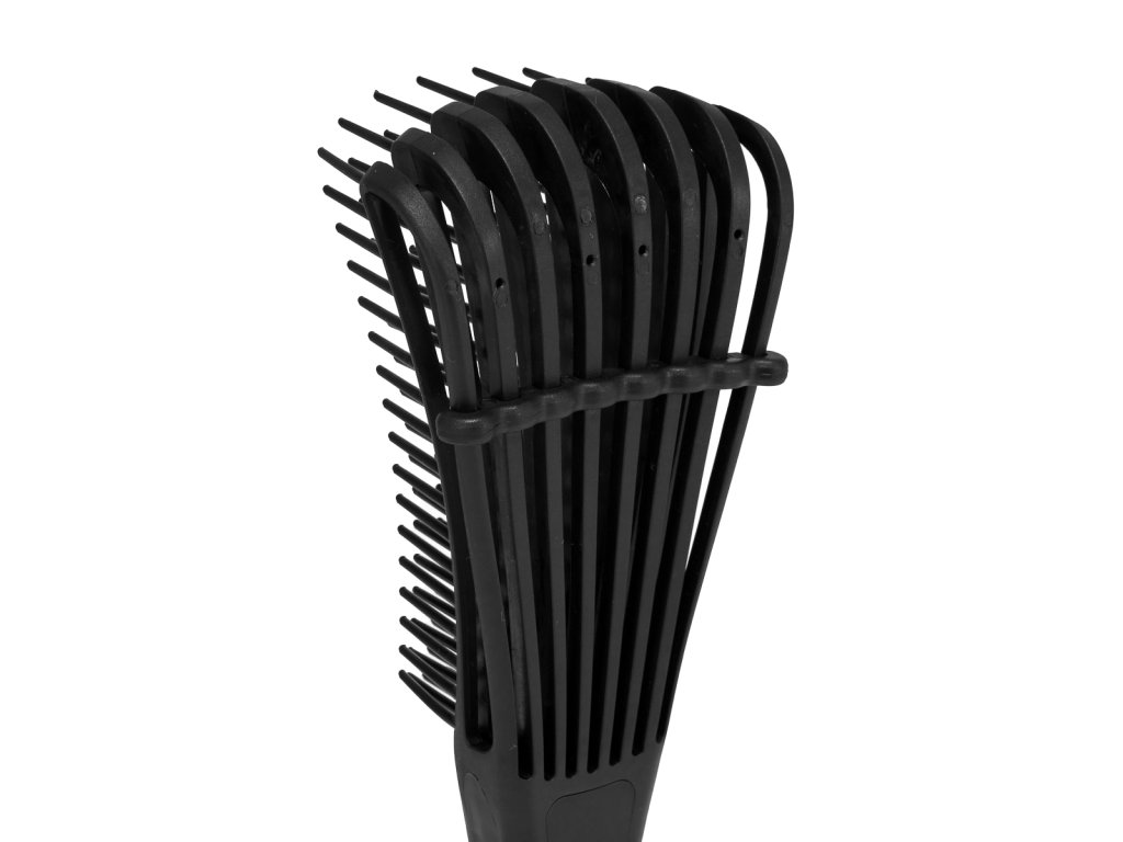 Hergestellt aus strapazierfähigem, flexiblem Kunststoff, entfernt es effektiv Verfilzungen und Verfilzungen. Das spezielle Design macht es einfach, selbst die verfilztsten Haare zu entwirren, und seine Flexibilität ermöglicht eine einfache Anpassung. Das skelettartige Design beschleunigt das Trocknen und schützt das Haar vor Überhitzung.