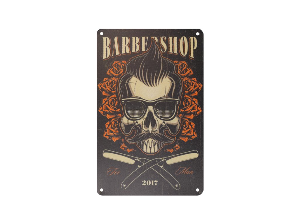 Ob als stylische Barbershop-Deko, Tattoo-Studio-Dekoration oder als Wandschmuck für Kosmetiksalons, Friseure oder urbane Loft-Wohnungen – die Barbier-Tafel B050 verleiht jedem Raum Charakter und Individualität.