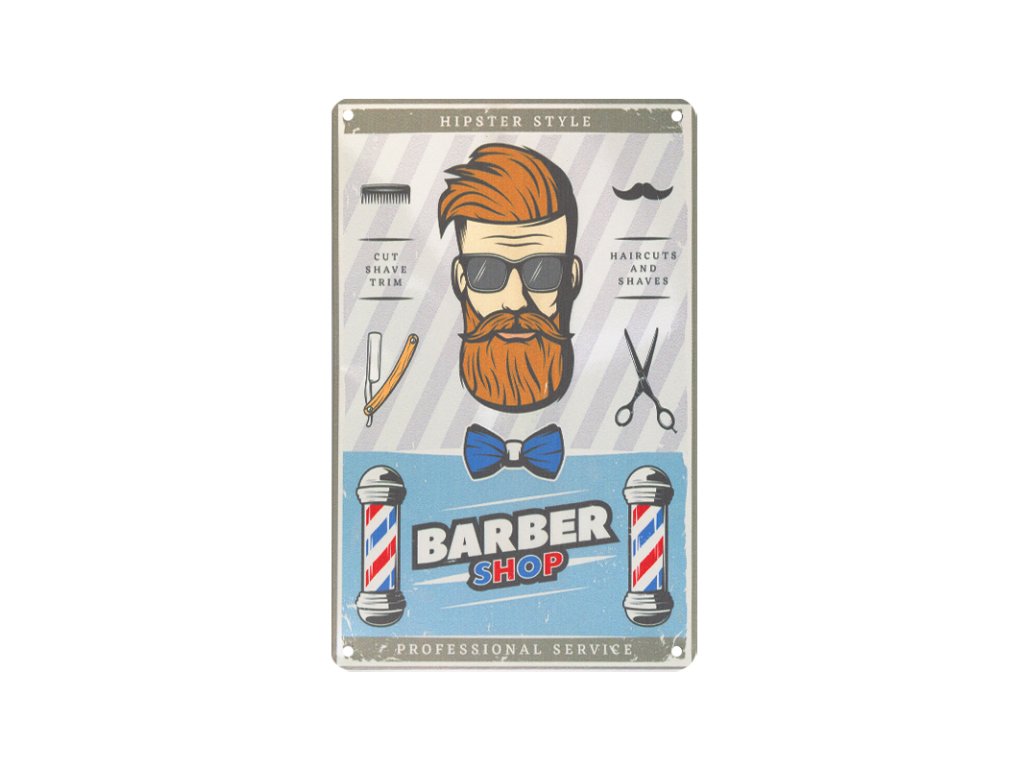 Die Dekorationstafel Barbier B057 ist ein auffälliges Designelement für Barbershops, Tattoo-Studios, Kosmetiksalons oder moderne Loft-Wohnungen. Hergestellt aus einem dünnen, aber stabilen Aluminiumblech, besticht sie durch ihren hochwertigen Druck im Sublimationsverfahren, der eine exzellente Farbtreue und Langlebigkeit garantiert – selbst bei starker Lichteinwirkung.