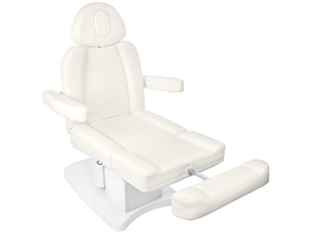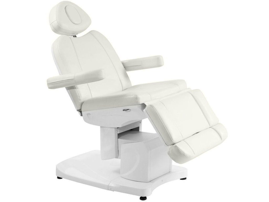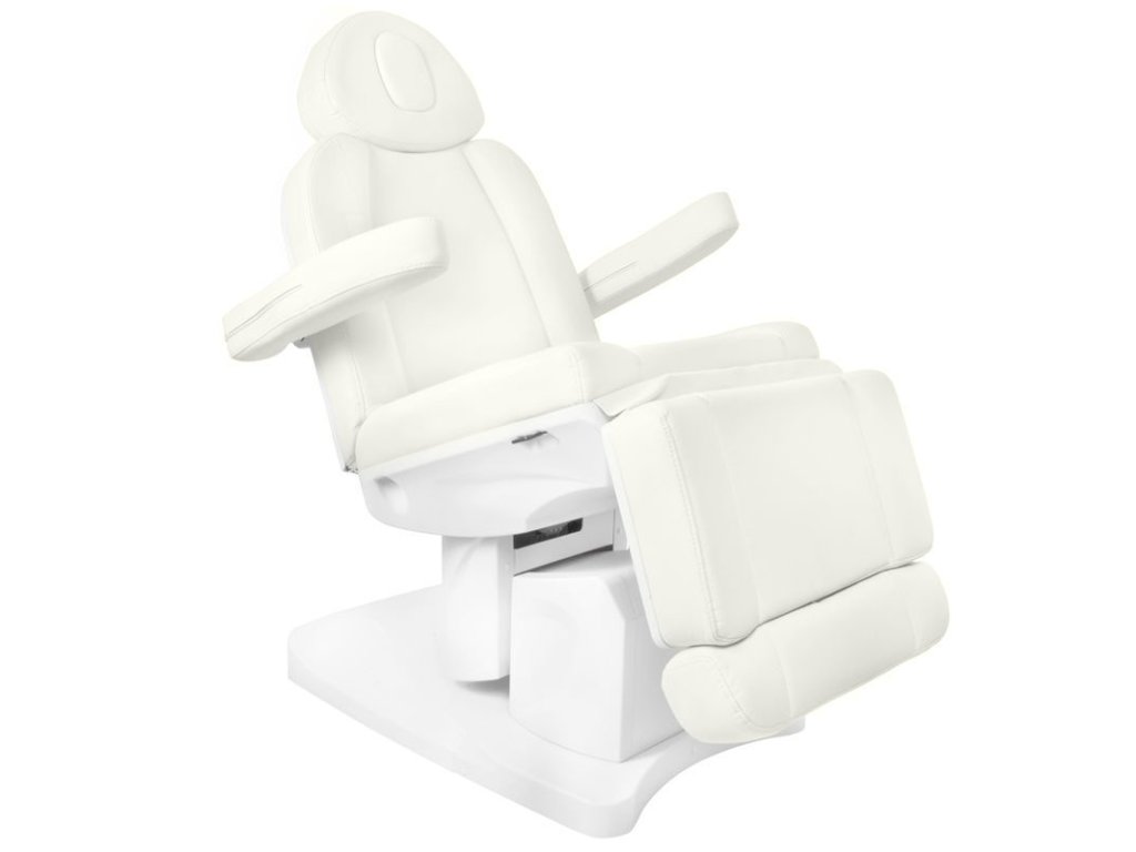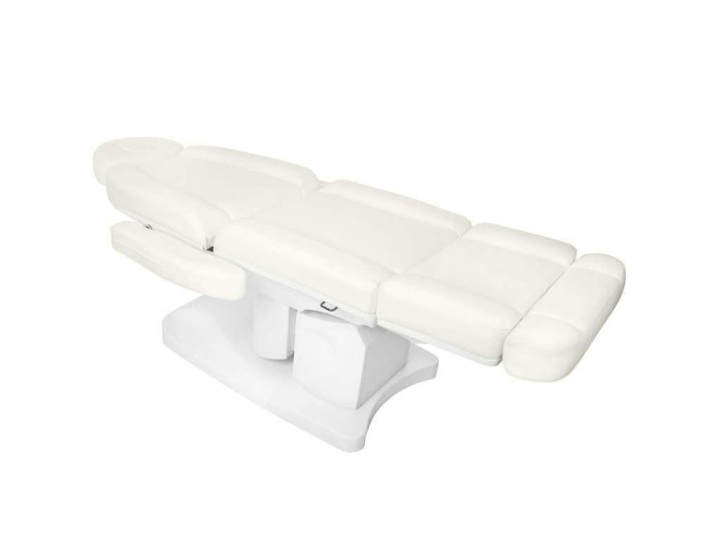 Die elektrische Kosmetikliege Azzurro 708A in klassischem Weiß ist eine hochfunktionale Studio-Liege für Schönheitssalons, Wellnesszentren, SPA-Bereiche sowie Fußpflege- und Tattoostudios. Ausgestattet mit vier separat steuerbaren Elektromotoren lässt sich die Liege bequem per Fernbedienung in allen wichtigen Bereichen verstellen: Höhe, Rückenlehne, Fußstütze sowie Sitzneigung (Cradle-Funktion).