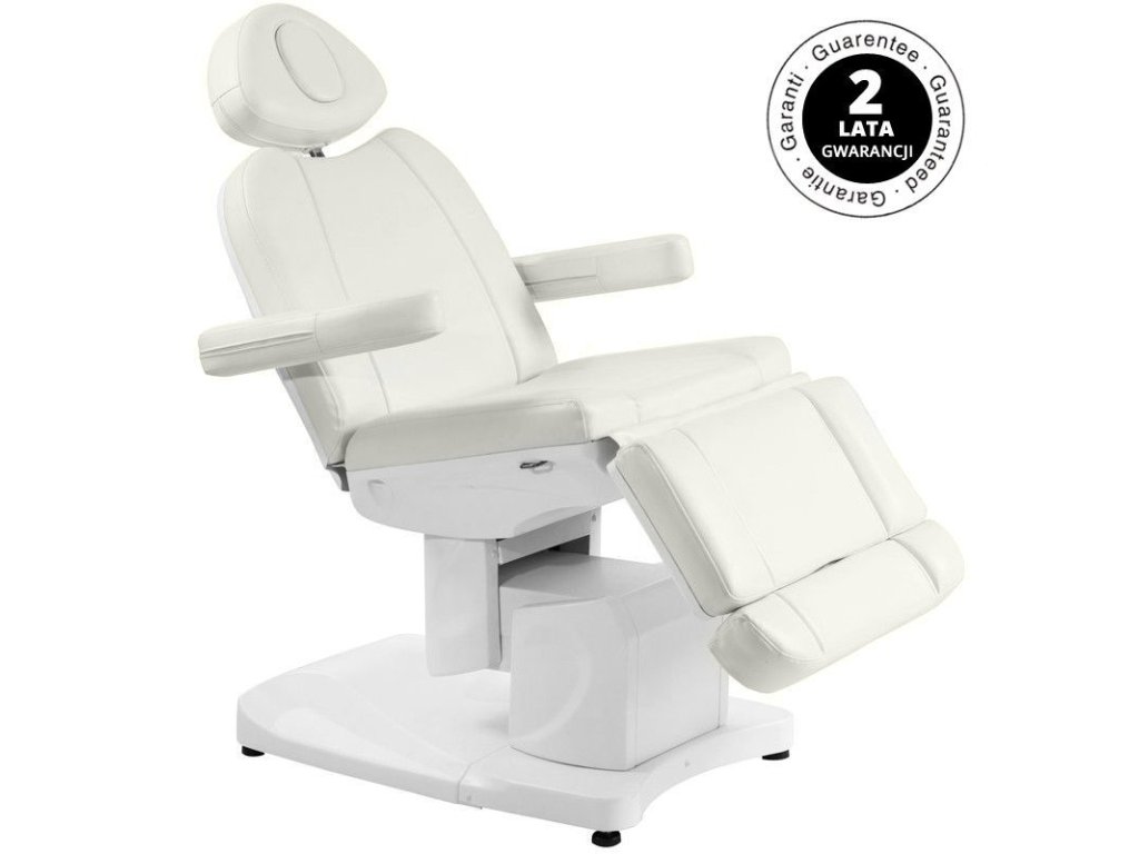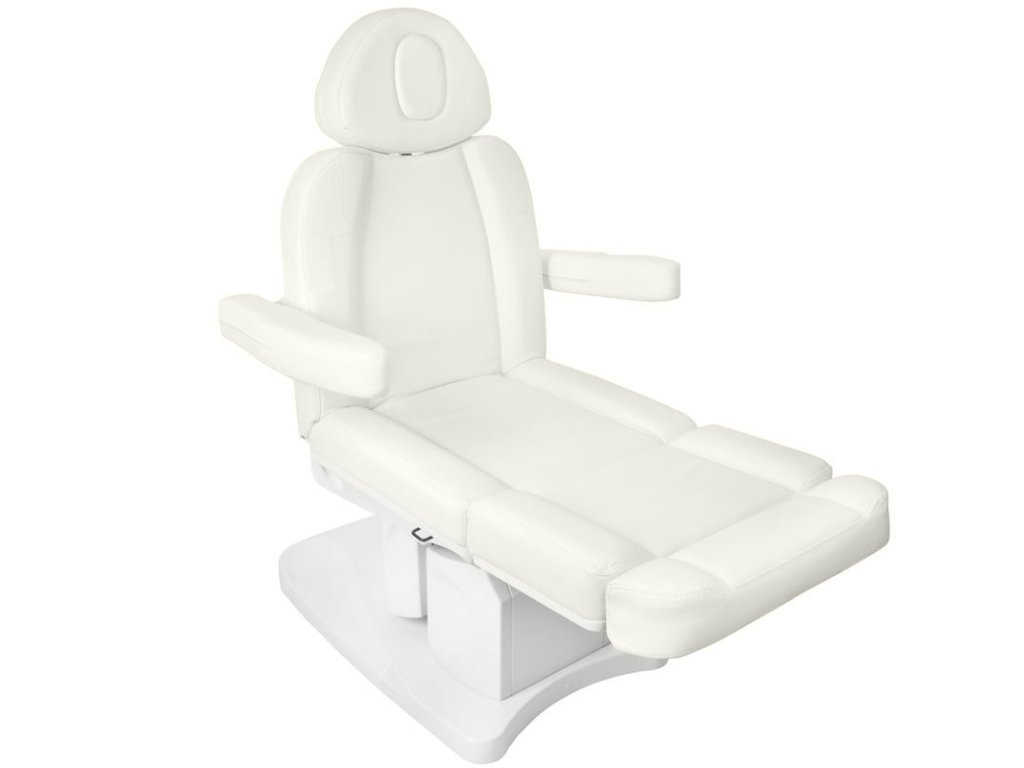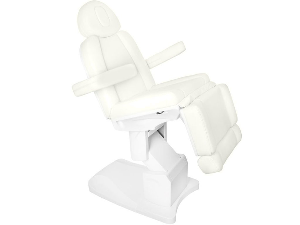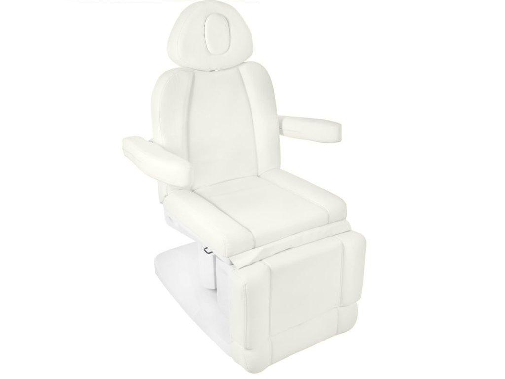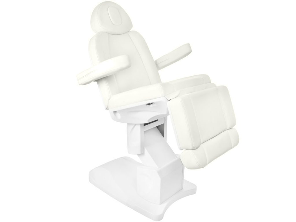 Die elektrische Kosmetikliege Azzurro 708A in klassischem Weiß ist eine hochfunktionale Studio-Liege für Schönheitssalons, Wellnesszentren, SPA-Bereiche sowie Fußpflege- und Tattoostudios. Ausgestattet mit vier separat steuerbaren Elektromotoren lässt sich die Liege bequem per Fernbedienung in allen wichtigen Bereichen verstellen: Höhe, Rückenlehne, Fußstütze sowie Sitzneigung (Cradle-Funktion).