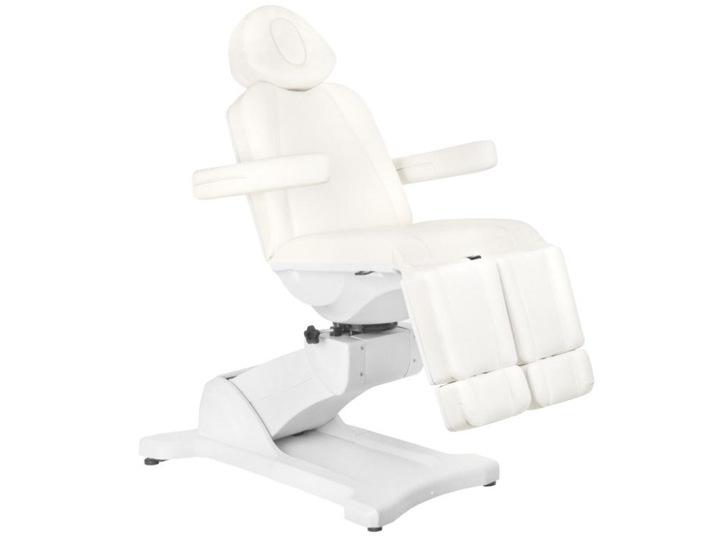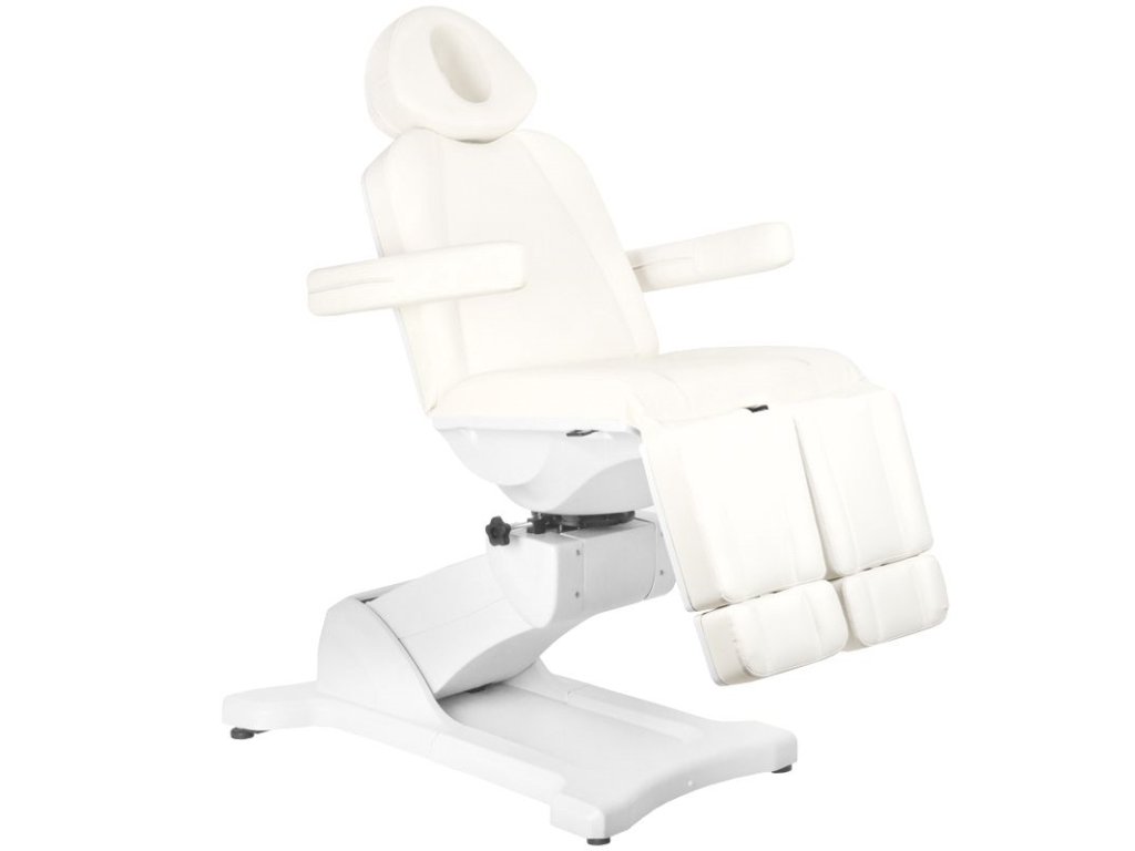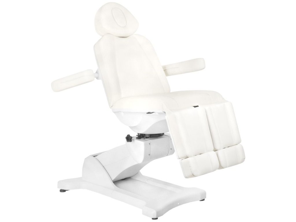 Die elektrische Kosmetikliege Azzurro 869AS PEDI in elegantem Weiß ist eine professionelle Lösung für moderne Kosmetiksalons, SPA-Studios, Massagepraxen und ästhetische Kliniken. Dank fünf leistungsstarker, unabhängig steuerbarer Motoren lassen sich Höhe, Rückenlehne, Sitzneigung (Cradle-Funktion) und Fußstütze bequem über eine Fernbedienung verstellen – für maximale Flexibilität bei Gesichts-, Körper- und Pediküre-Behandlungen.