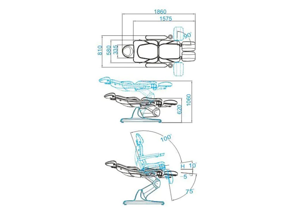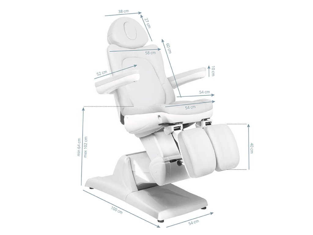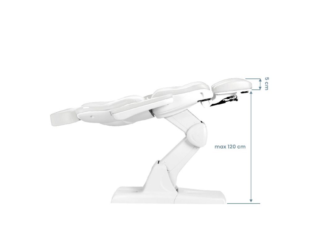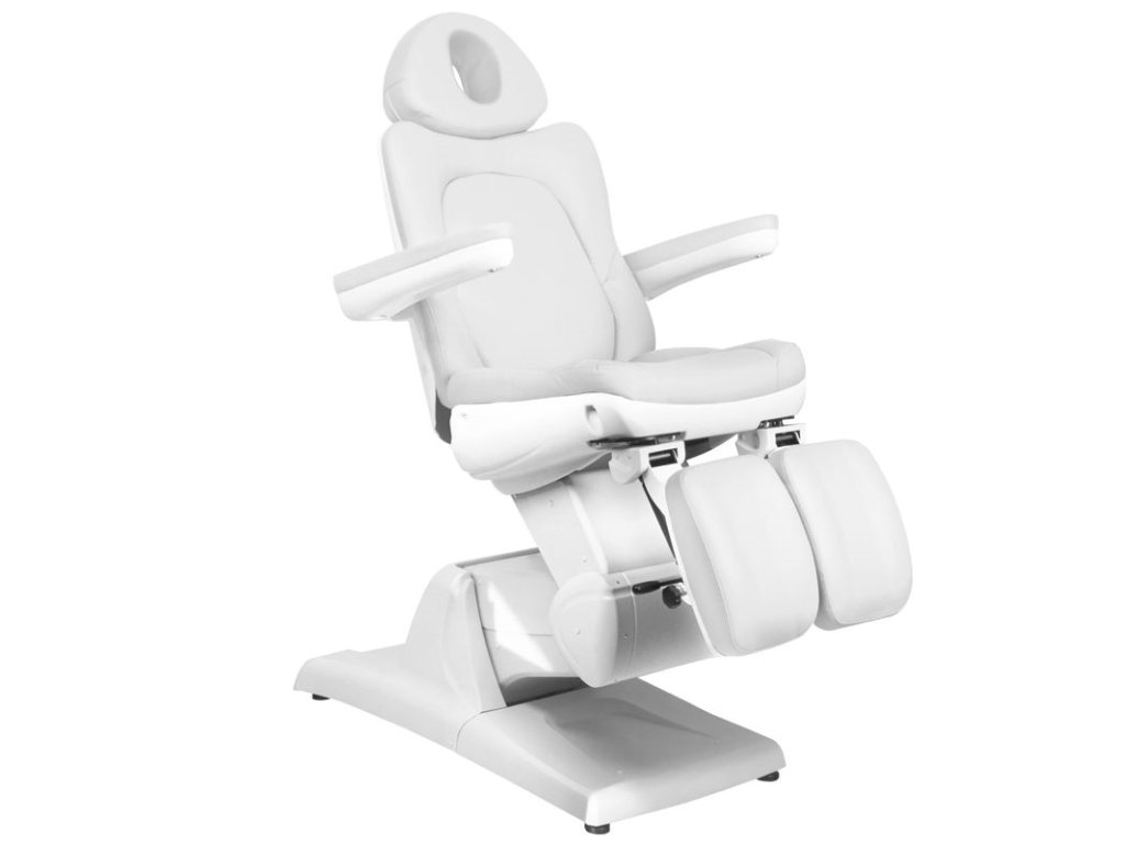 Ausgestattet mit drei leisen Elektromotoren, lässt sich die Liege bequem in Höhe, Rückenlehne und Sitzneigung elektrisch über eine Fernbedienung anpassen – individuell abgestimmt auf die jeweilige Behandlung. Dank der integrierten Pediküraussparung ist diese Liege ideal für kosmetische Gesichts- und Fußbehandlungen geeignet.