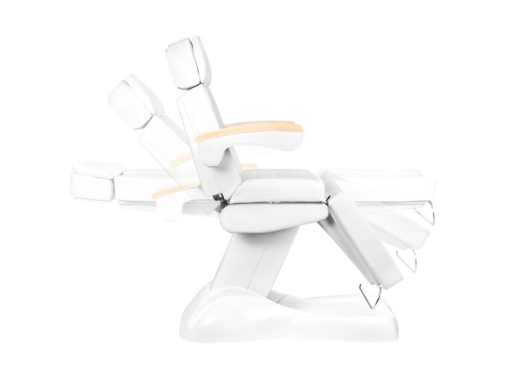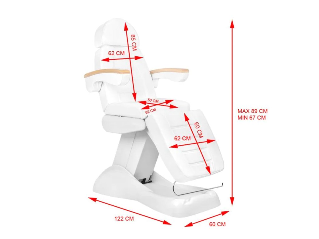 Die elektrische Kosmetikliege LUX in Weiß mit Buche-Akzenten vereint Funktionalität, Stil und Komfort – ideal für den professionellen Einsatz in Kosmetiksalons, SPA-Zentren, Wellnessräumen, Schönheitssalons und Pediküre-Studios. Dank drei kraftvoller Motoren lassen sich die wichtigsten Elemente wie Höhe, Rückenlehne und Fußstütze einfach über die mitgelieferte Fernbedienung regulieren – für maximale Flexibilität und ergonomisches Arbeiten.