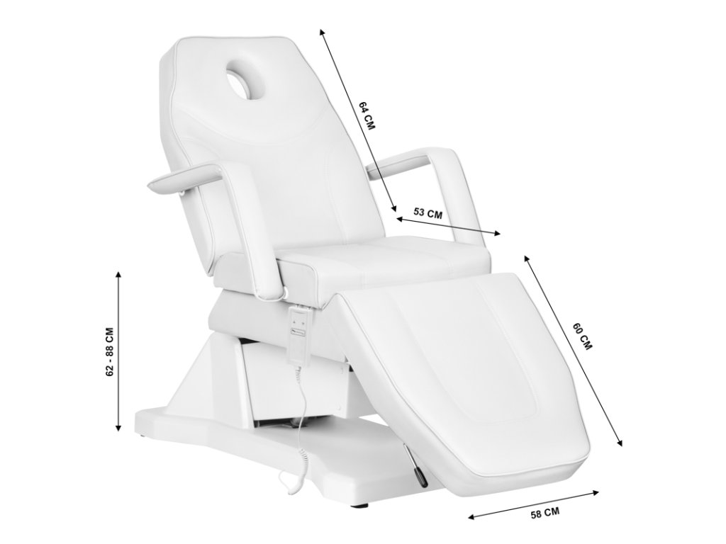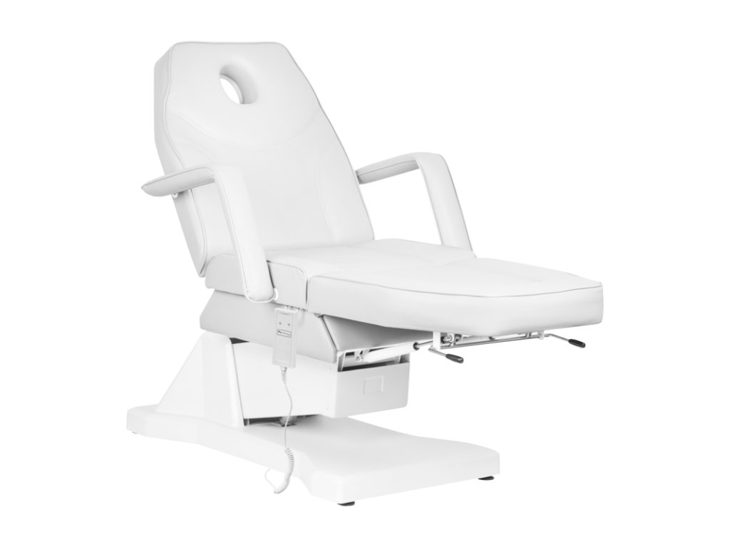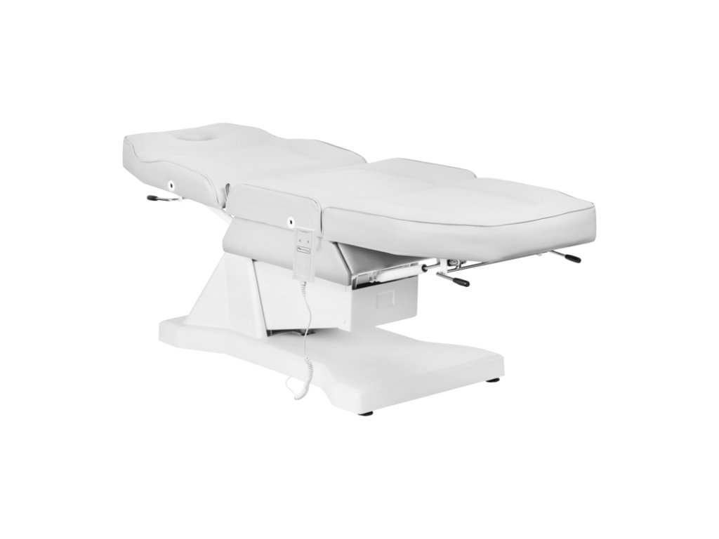 Die Kosmetikliege ist mit einem Elektromotor ausgestattet, der eine stufenlose Höhenverstellung ermöglicht und ergonomisches Arbeiten erleichtert. Rückenlehne und Beinauflage werden manuell eingestellt, sodass die Liege schnell und unkompliziert an die jeweilige Behandlung und die Bedürfnisse des Kunden angepasst werden kann.