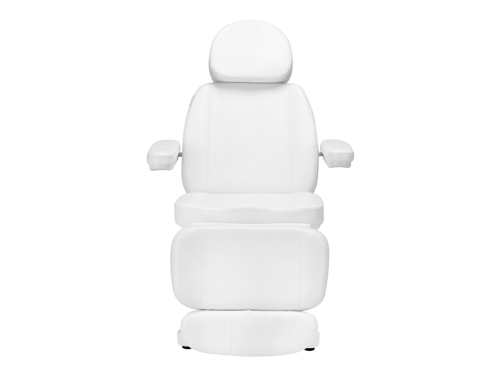 Die ausziehbare Kopfstütze sowie die verstellbare Fußstütze bieten zusätzlichen Komfort und ermöglichen eine präzise Anpassung an individuelle Körpergrößen. Die 180° drehbaren und abnehmbaren Armlehnen erleichtern den Zugang und steigern den Bedienkomfort während der Behandlungen – etwa bei Gesichtsbehandlungen oder Pediküre.