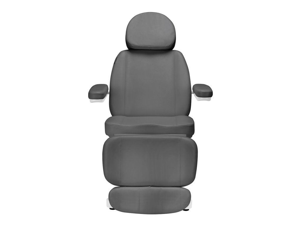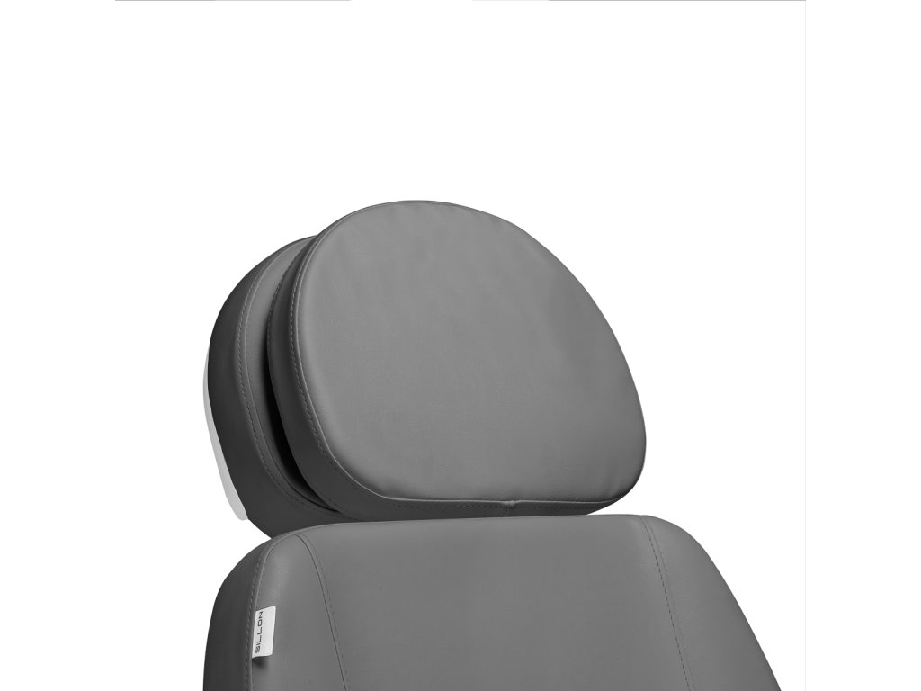 Der breite, komfortabel gepolsterte Sitz ist mit ergonomisch geformtem Schaumstoff gefüllt, der auch bei langen Anwendungen eine korrekte Körperhaltung unterstützt. Das pflegeleichte Kunstleder in Grautönen ist angenehm auf der Haut, leicht zu reinigen, feuchtigkeitsbeständig und resistent gegen Desinfektionsmittel – ideal für den professionellen Alltag.