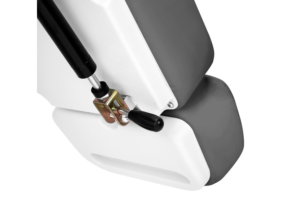 Die 180° schwenkbaren Armlehnen erleichtern das Ein- und Aussteigen und können bei Bedarf vollständig entfernt werden. Die Polsterung besteht aus hochwertigem, feuchtigkeitsbeständigem Kunstleder in Grautönen und ist besonders pflegeleicht. Der Sitz ist mit ergonomisch profiliertem Schaumstoff gefüllt und sorgt so für Komfort und optimale Körperstütze – auch bei langen Behandlungen.