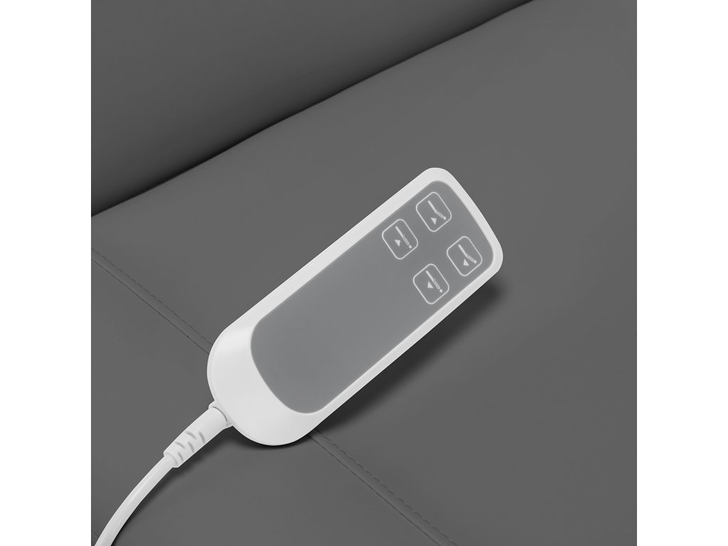 Die Liege ist mit 2 kraftvollen Elektromotoren ausgestattet, die per kabelgebundener Fernbedienung eine stufenlose Höhenverstellung und Verstellung der Rückenlehne ermöglichen. Die geteilte Fußstütze lässt sich manuell in Winkel und Position verstellen, inklusive seitlicher Neigung – ideal für präzise podologische Eingriffe.