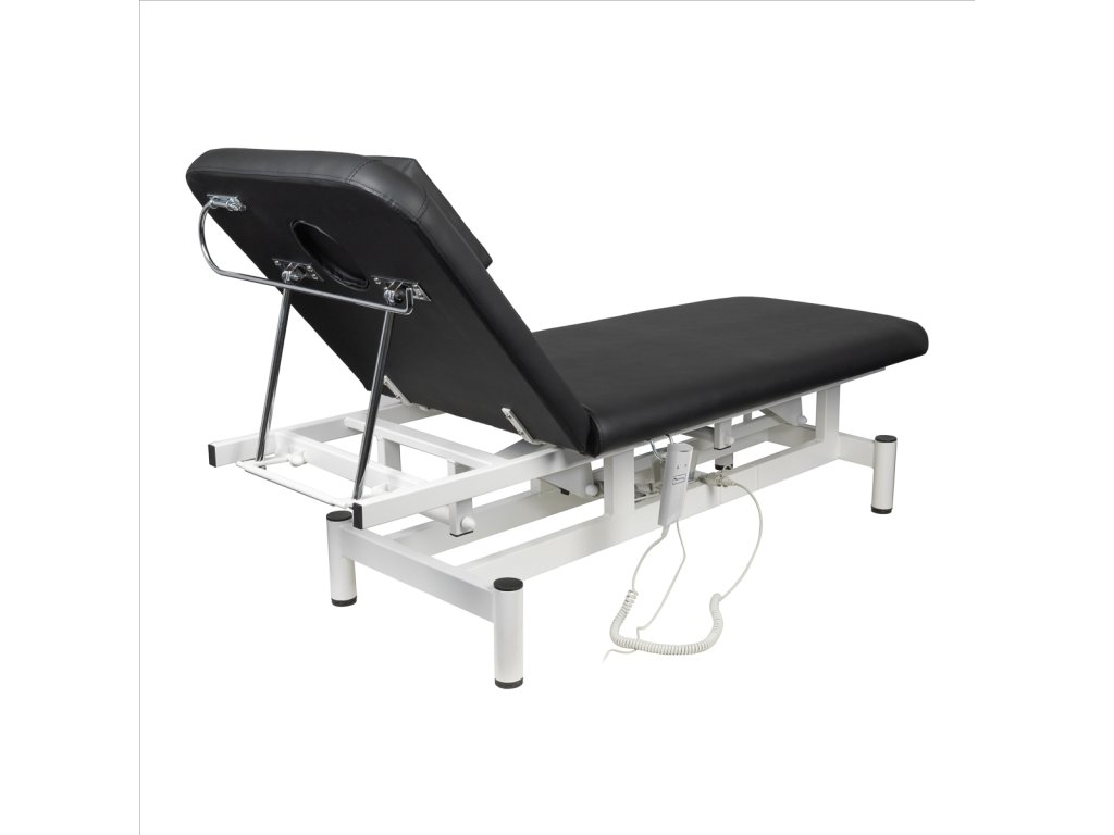 Ausgestattet mit einem leisen Elektromotor, lässt sich die Höhe der Liege elektrisch verstellen, sodass sie individuell an die Körpergröße des Kunden und die Arbeitshöhe des Therapeuten angepasst werden kann. Die Neigung der Rückenlehne wird manuell justiert und bietet somit zusätzlich Flexibilität bei Massagen oder kosmetischen Behandlungen.