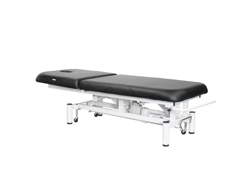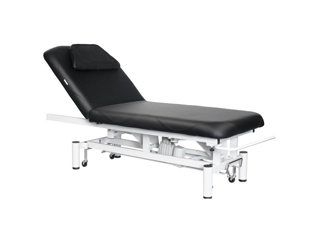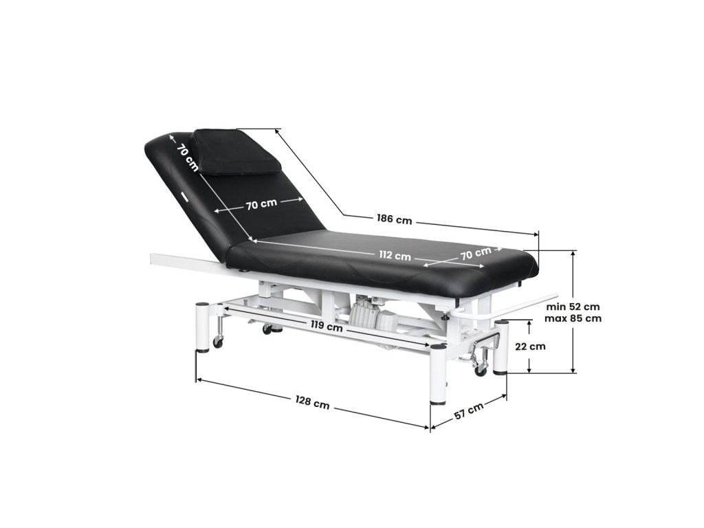Dank eines leistungsstarken Elektromotors lässt sich die Höhe der Liege elektrisch zwischen 52 cm und 85 cm stufenlos verstellen, was eine ergonomische Arbeitshaltung für die behandelnde Person ermöglicht. Die Rückenlehne und Liegeneigung sind manuell einstellbar, wodurch eine präzise Anpassung an verschiedene Behandlungen möglich ist – ob klassische Massage, Rehabilitationsbehandlung oder kosmetische Anwendung.