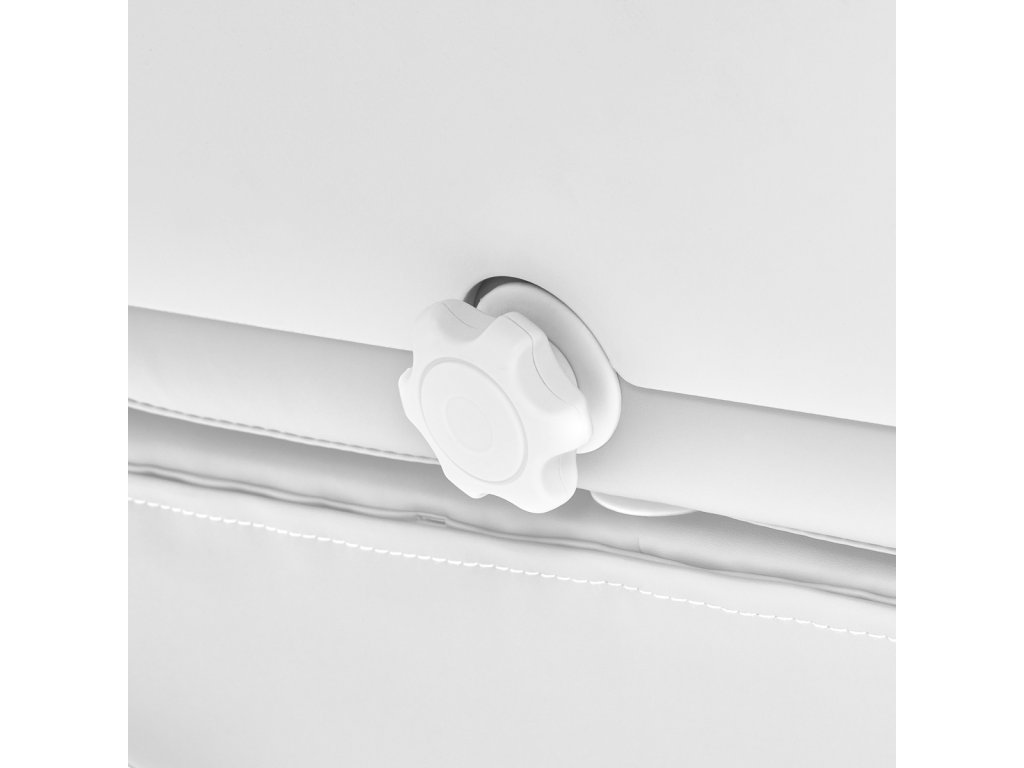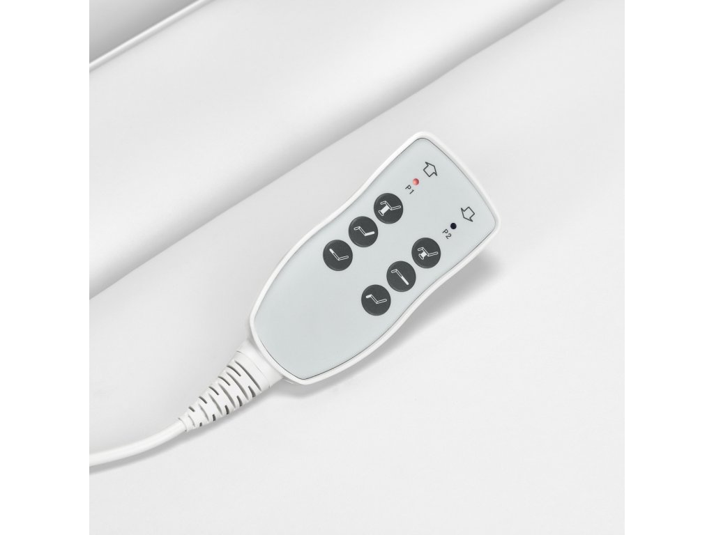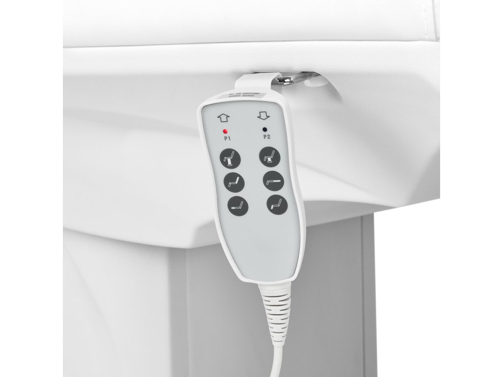 Die beweglichen, drehbaren und abnehmbaren Armlehnen sowie die praktische Fernbedienung, die sich seitlich einhängen lässt, erhöhen die Benutzerfreundlichkeit und unterstützen eine hygienische und effiziente Arbeitsweise in jedem professionellen Kosmetiksalon. Der Bezug aus hochwertigem weißem Kunstleder ist angenehm weich, feuchtigkeitsbeständig, leicht zu reinigen und desinfektionsmittelresistent – ideal für den täglichen Einsatz im Studio.