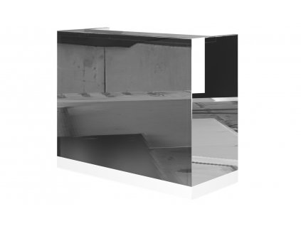 Empfangstheke mit Spiegeleffekt aus hochwertigem Lacobel-Glas – 120 cm breit, fertig montiert, ideal für moderne Rezeptionen.