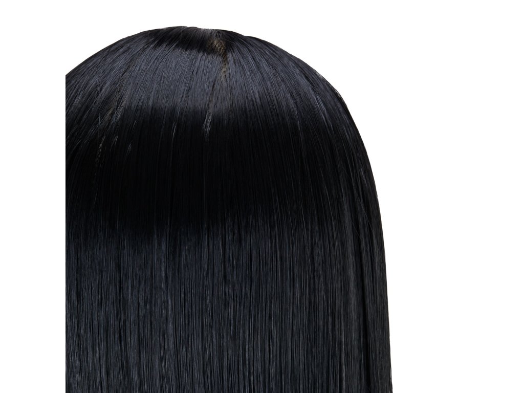 Das Modell WZ2 wurde aus hochwertigen Materialien mit Verwendung von synthetischem Haar in Schwarztönen sorgfältig auf dem Kopf befestigt. Die Länge, die gerade Struktur, gestuftes Schneiden und optimale Dichte ermöglichen es, dass dieses Haar sich ähnlich wie menschliches verhält, was fortgeschrittene Friseurbehandlungen wie komplexe Frisuren, Färben oder Blondieren ermöglicht.