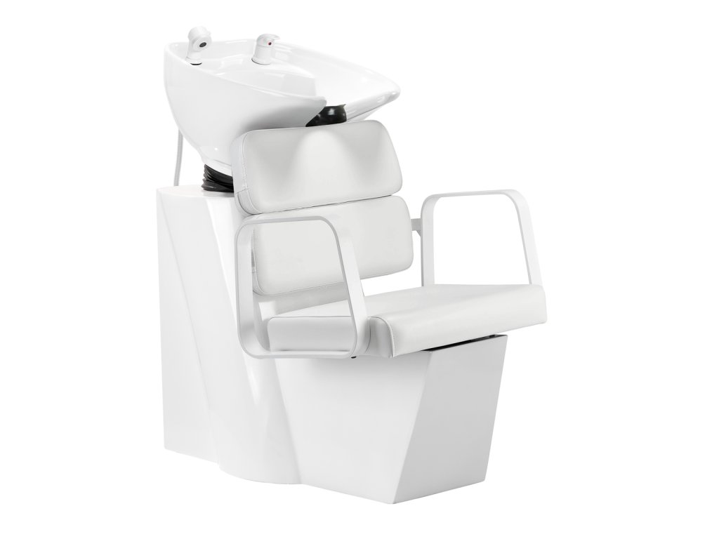 Die Kombination aus weißer Basis, weißer Polsterung und schwarzer Keramikschale sorgt für ein klares, zeitloses Design, das sich sowohl in klassische als auch in moderne Einrichtungen einfügt. Die tiefe Keramikschale verhindert Spritzwasser und das Verschütten von Pflegeprodukten, während der verstellbare Neigungswinkel individuellen Kundenkomfort ermöglicht. Die Oberfläche ist besonders widerstandsfähig gegen Kratzer und Flecken und lässt sich leicht reinigen.