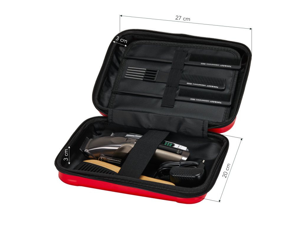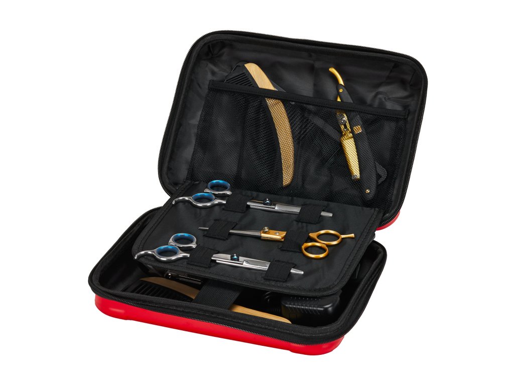Das Etui bietet ausreichend Platz für Schere, Kämme, Bürsten und anderes Friseurzubehör. Praktische Sicherheitselemente im Innenraum sorgen dafür, dass die Werkzeuge auch während des Transports sicher bleiben. Die Verwendung hochwertiger Materialien sorgt für maximale Haltbarkeit und einfache Reinigung.