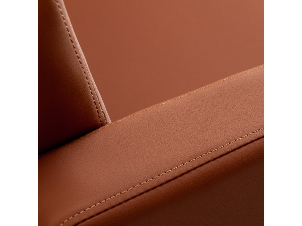 Die Polsterung aus braunem Kunstleder verleiht dem Stuhl eine warme, elegante Note, während die schwarze quadratische Basis für Stabilität und Professionalität sorgt. Dank feuchtigkeitsbeständiger und leicht zu reinigender Materialien bleibt der Stuhl lange ansprechend und funktional.