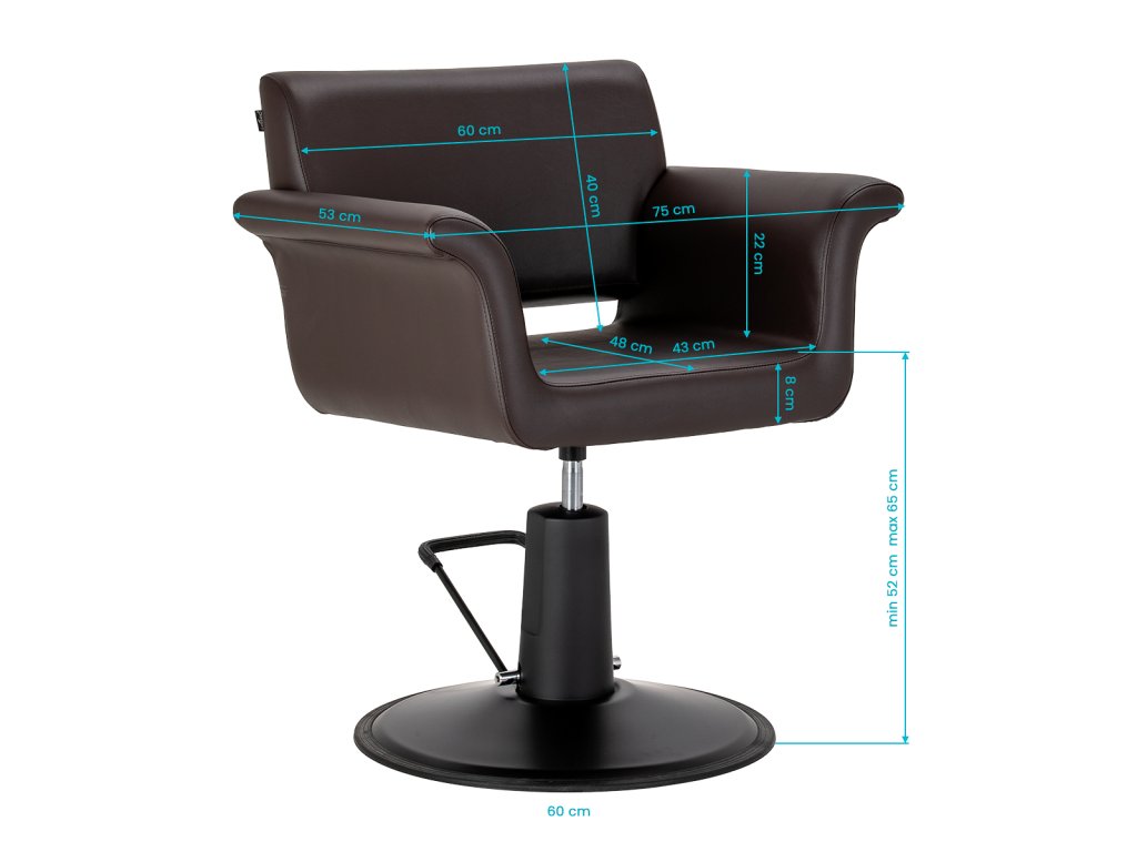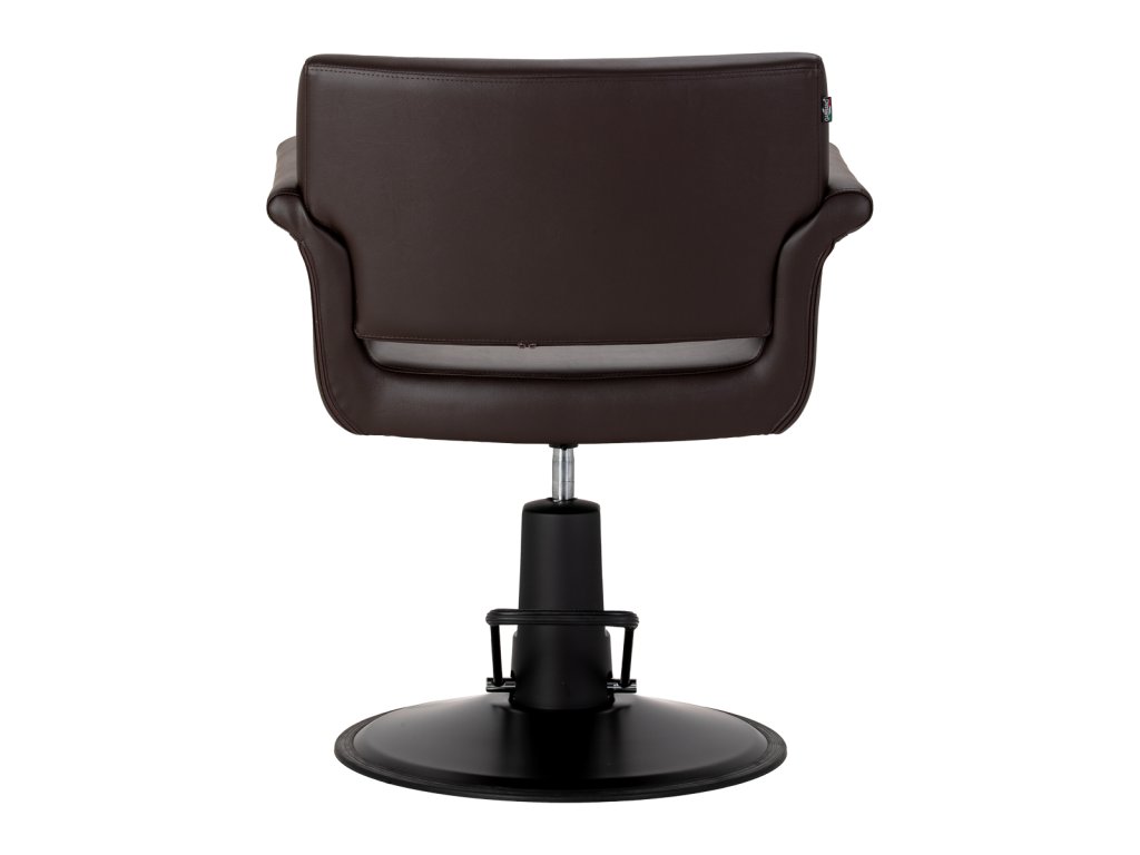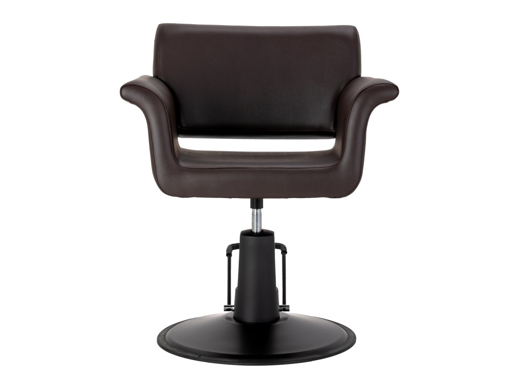Das minimalistische Design, die sanft nach außen geformten Armlehnen und die elegante Farbkombination aus Braun und Schwarz ermöglichen eine harmonische Integration in moderne wie auch klassische Salonkonzepte und unterstreichen den professionellen Charakter des Interieurs.