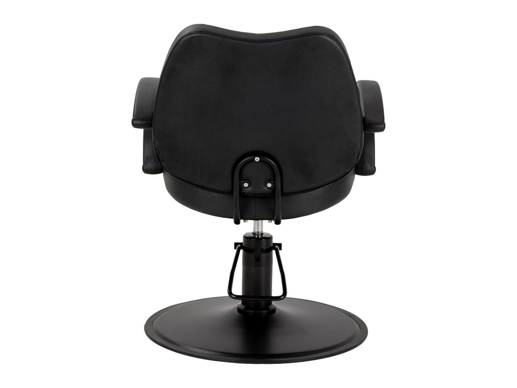 Der vollständig drehbare Mechanismus sorgt für Bewegungsfreiheit und einen leichten Zugang zum Kunden von allen Seiten. Die ergonomisch geformte Rückenlehne unterstützt den Rücken zuverlässig, während die abgerundete obere Kante den Zugang zum Nacken- und Haaransatz erleichtert – ideal für präzise Schnitte, Färbungen und Stylings.