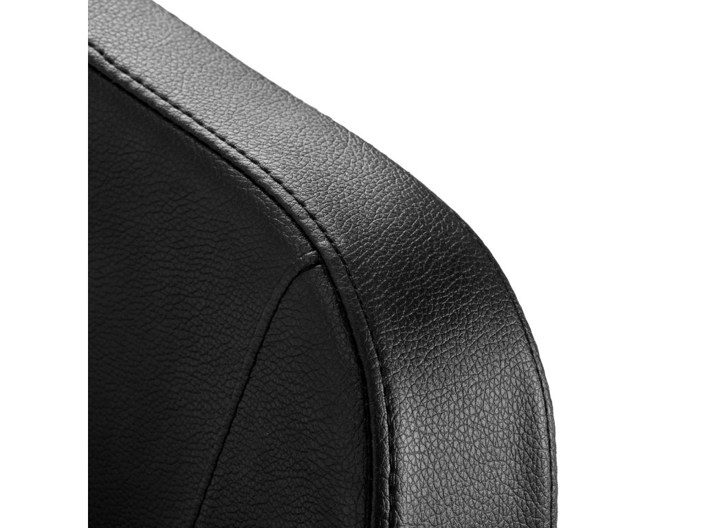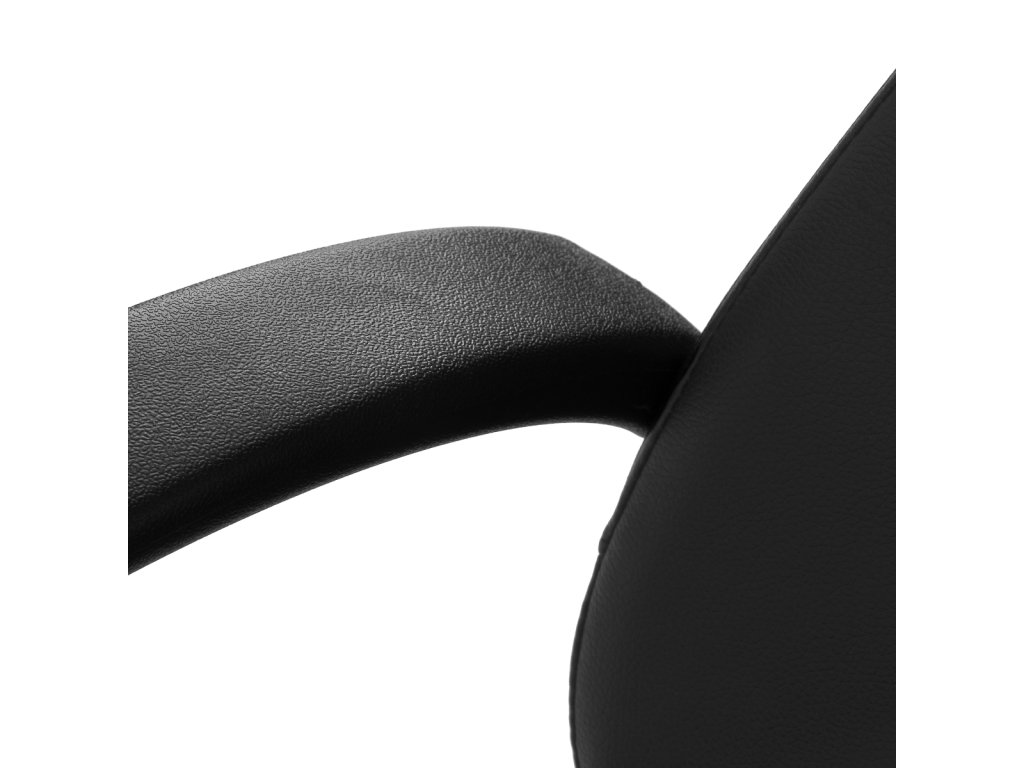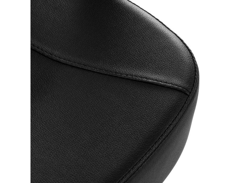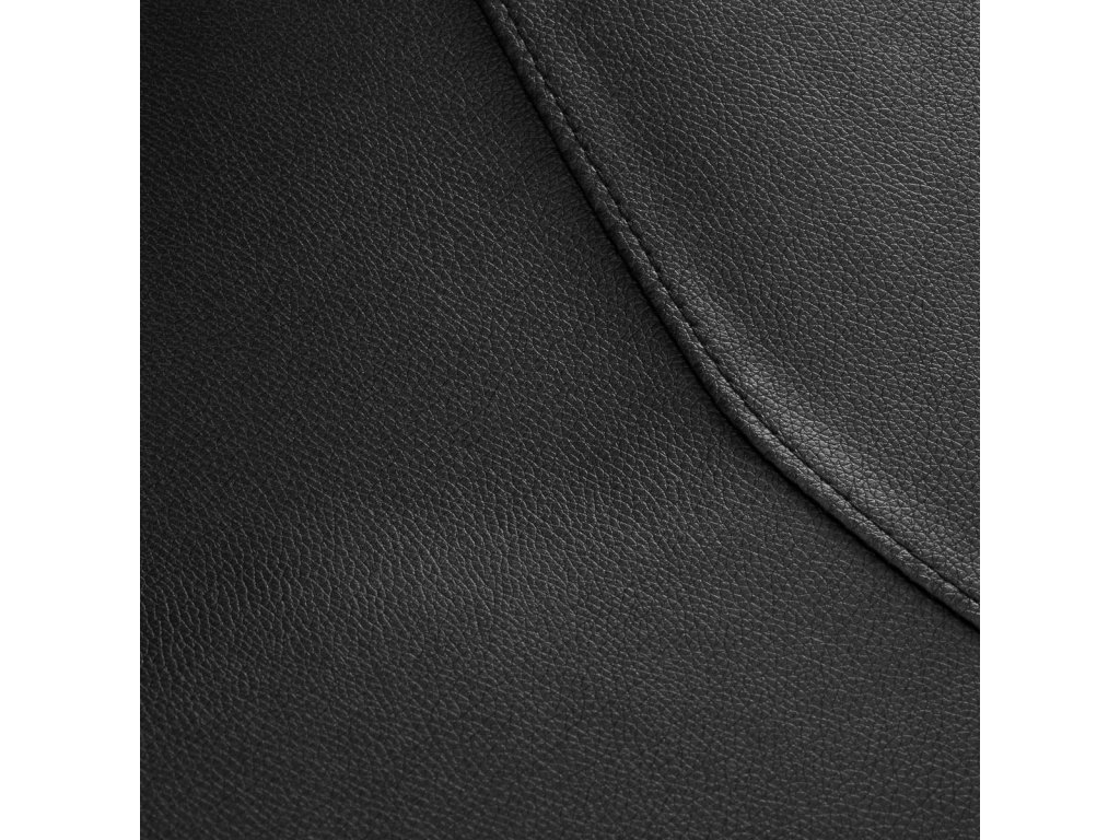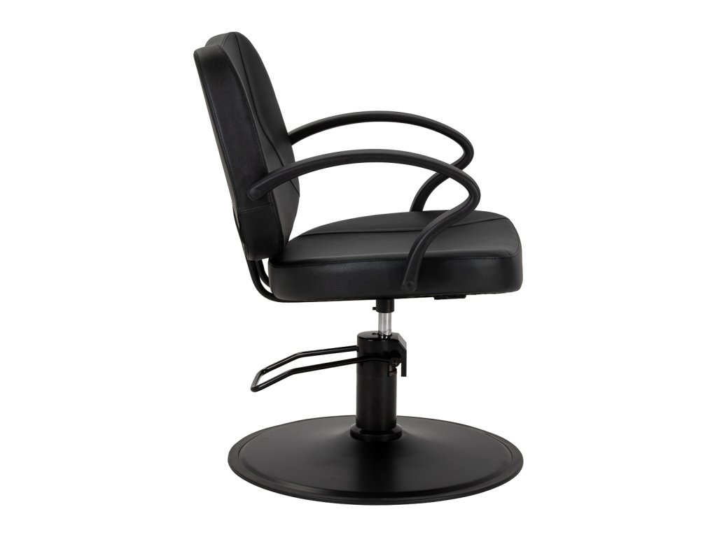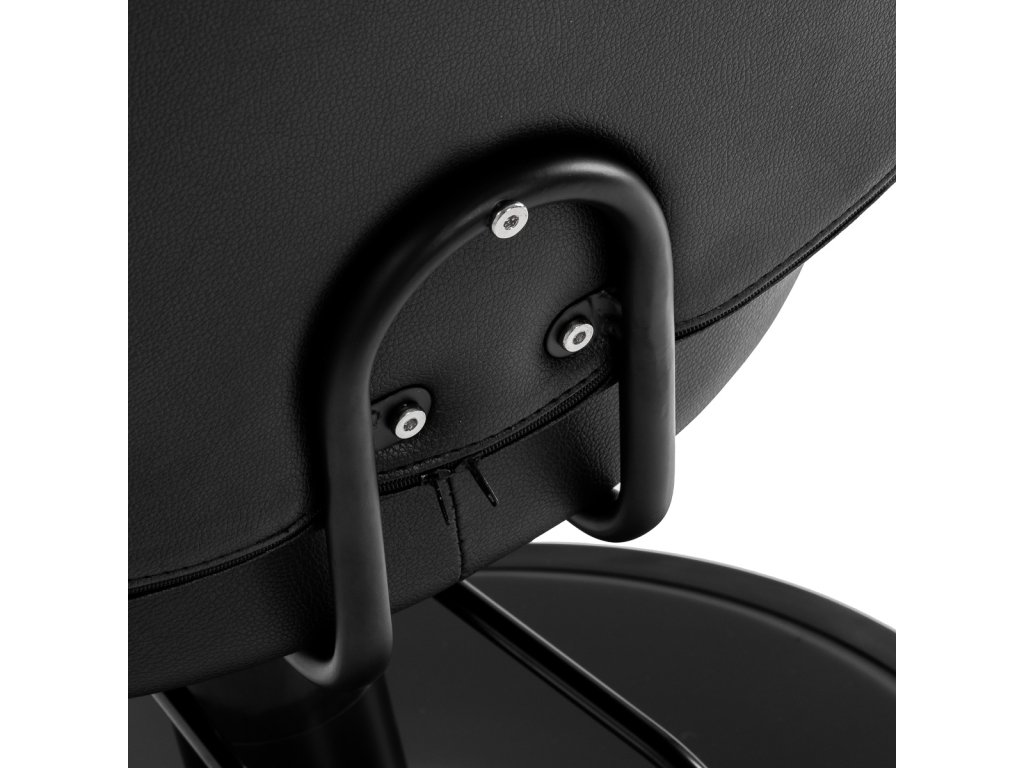 Der Bezug aus hochwertigem Kunstleder in elegantem Schwarz ist pflegeleicht, langlebig und beständig gegenüber Feuchtigkeit. Die stabile, runde Basis in Schwarz bietet Sicherheit und Standfestigkeit auch im intensiven Salonalltag.