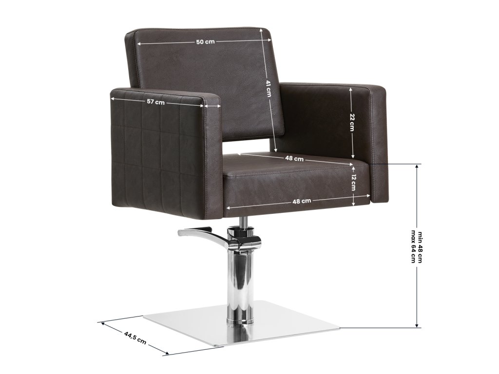 Der Gabbiano Friseurstuhl Ankara in Braun ist ein stilvolles und funktionales Möbelstück für anspruchsvolle Friseursalons. Er kombiniert klassisches Design mit hoher Funktionalität und Komfort. Dank des robusten hydraulischen Lifts kann die Sitzhöhe stufenlos von 48 bis 64 cm angepasst werden – auch während der Behandlung, was ergonomisches Arbeiten erleichtert.