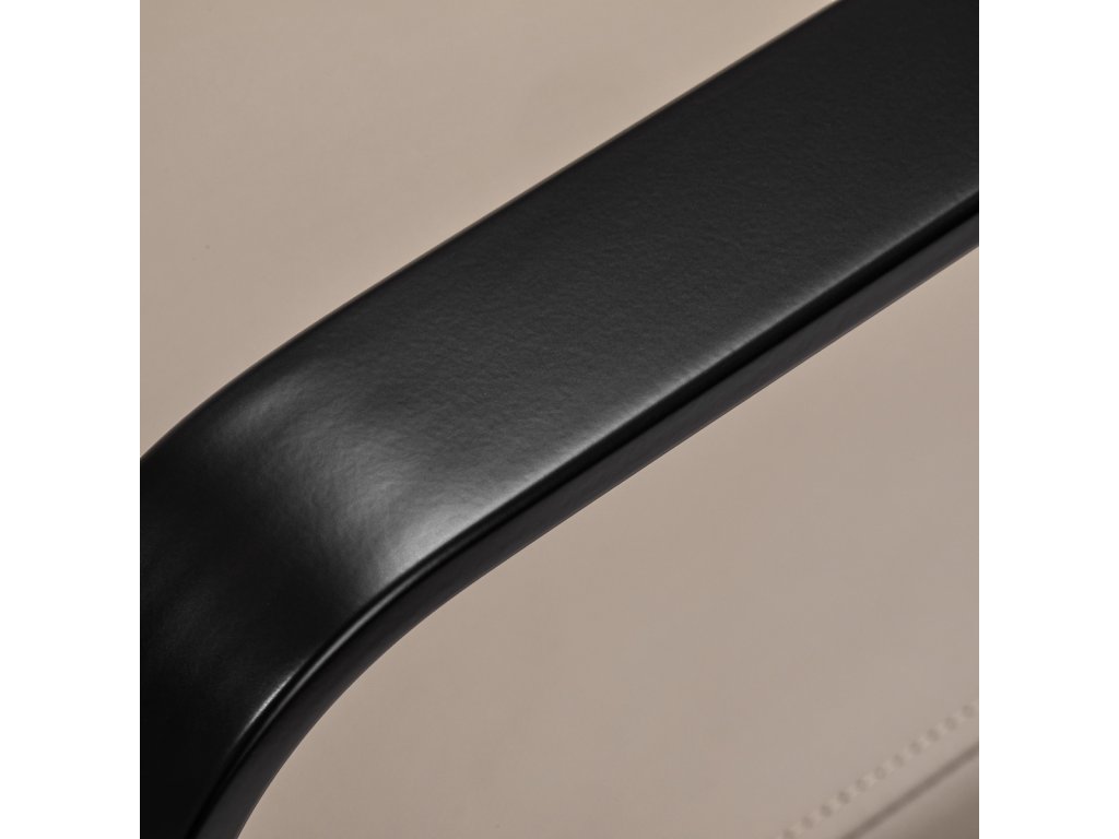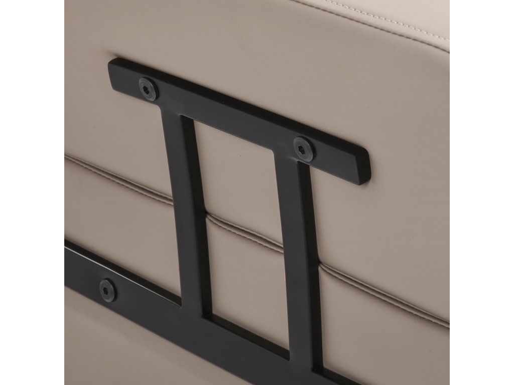 Ein besonderes Highlight ist die Öffnung zwischen Rückenlehne und Sitzfläche, die eine einfache Reinigung ermöglicht und zur allgemeinen Hygiene im Friseurstudio beiträgt. Die geometrischen Metallarmlehnen ermöglichen eine stabile und korrekte Sitzhaltung, ideal für präzise Dienstleistungen wie Haarschnitte, Bartpflege oder Colorationen.