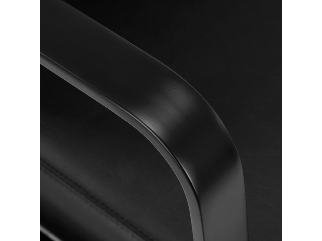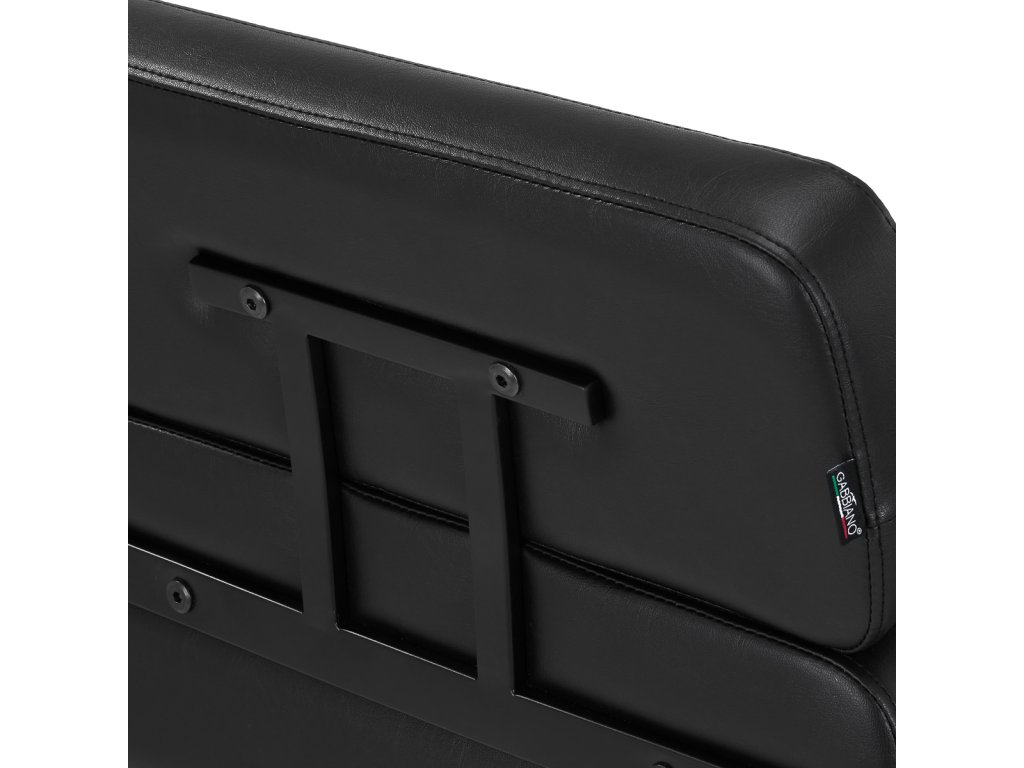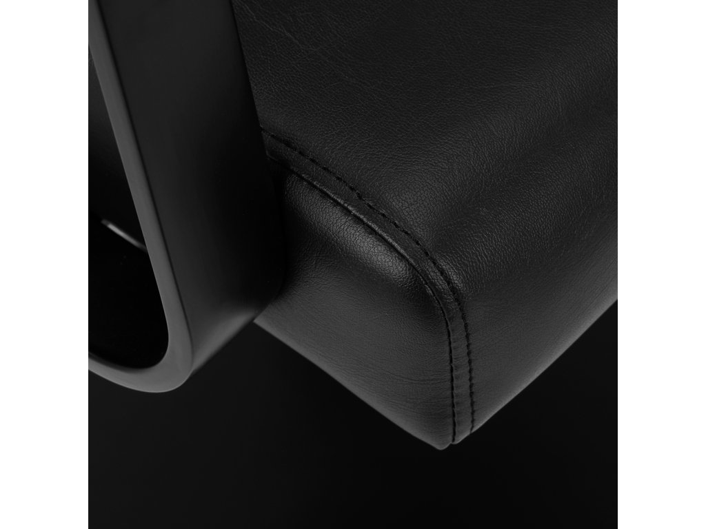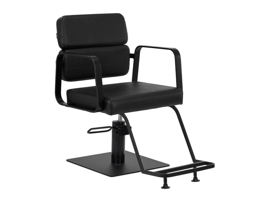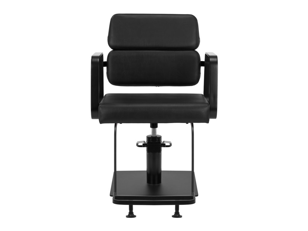 Die hochwertige Schaumstofffüllung, kombiniert mit einem widerstandsfähigen Kunstlederbezug, macht den Stuhl pflegeleicht, feuchtigkeitsresistent und besonders langlebig. Die edle schwarze Farbgebung macht ihn zu einem Blickfang in jedem Friseursalon, unabhängig vom Interieurstil.