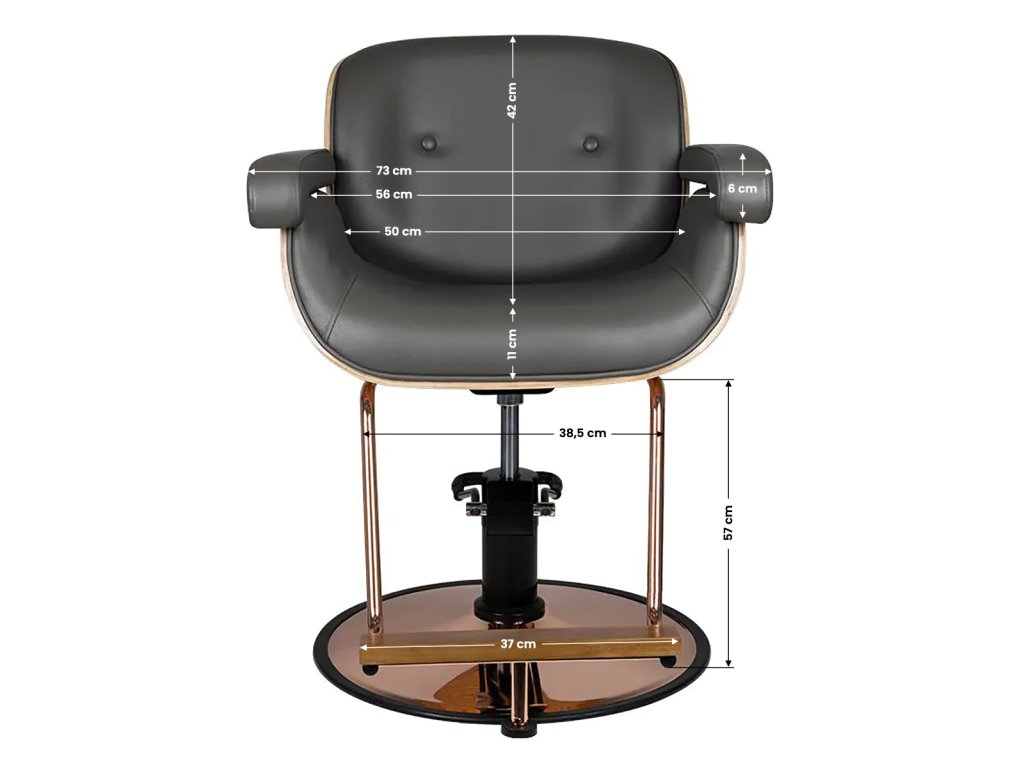 Das moderne Design in grauer Farbgebung fügt sich harmonisch in jede moderne Friseursalon-Einrichtung ein. Ob für klassische Haarschnitte, Styling oder Colorationen – dieser Friseurstuhl sorgt für maximalen Komfort sowohl für den Kunden als auch für den Friseur.