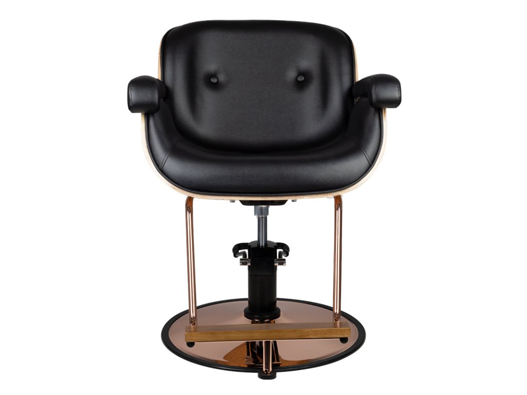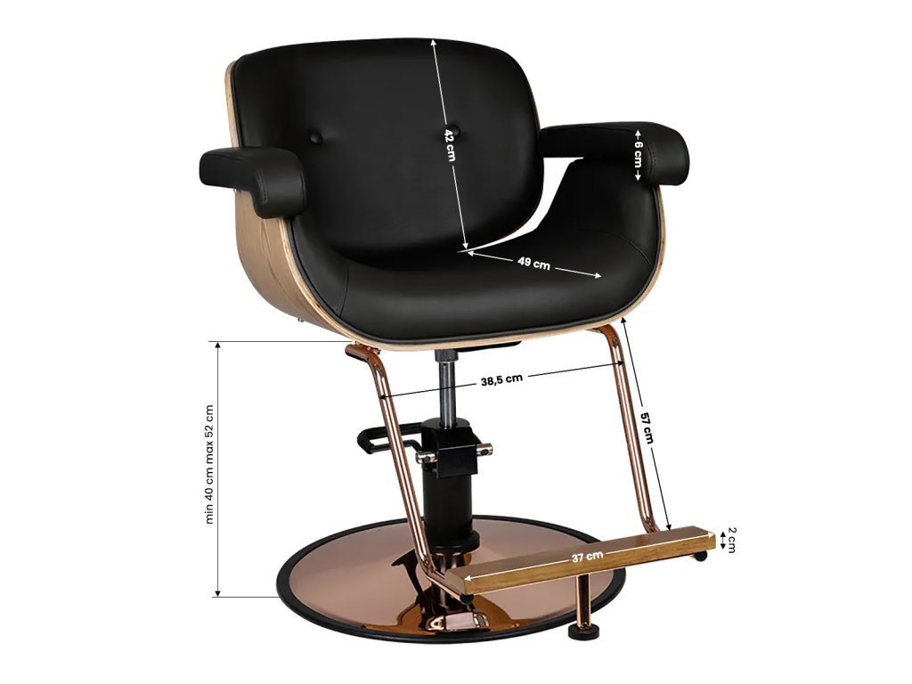 Mit viel Liebe zum Detail gefertigt, vereint der Stuhl ästhetische Eleganz mit ergonomischem Komfort. Die großzügige, komfortable Sitzfläche sorgt für angenehmes Sitzen auch bei längeren Behandlungen, während die stilvolle Form und die edle Farbgebung in Schwarz dem Salon ein luxuriöses Ambiente verleihen.