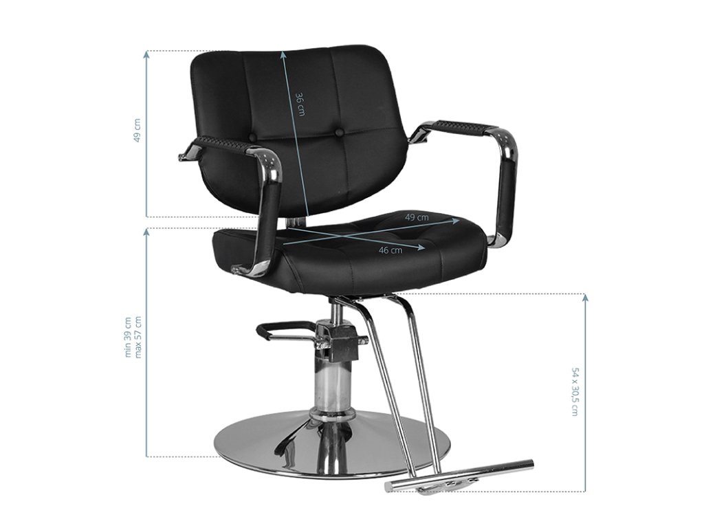 Die ergonomisch geformte Sitzfläche und Rückenlehne ermöglichen eine entspannte Sitzposition, was besonders bei längeren Behandlungen von Vorteil ist. Die höhenverstellbare Funktion erlaubt es, den Stuhl bequem an die Körpergröße von Friseur und Kunde anzupassen – für ein effizientes und ergonomisches Arbeiten.