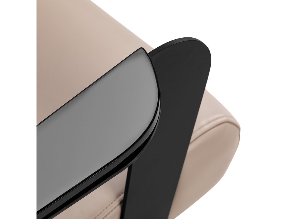 Die modernen Armlehnen aus einer Kombination von Metall und halbtransparentem Acryl verleihen dem Stuhl einen markanten, zeitgemäßen Charakter. Gleichzeitig unterstützen sie eine natürliche Arm- und Schulterhaltung des Kunden, was den Komfort beim Schneiden und Stylen deutlich erhöht.
