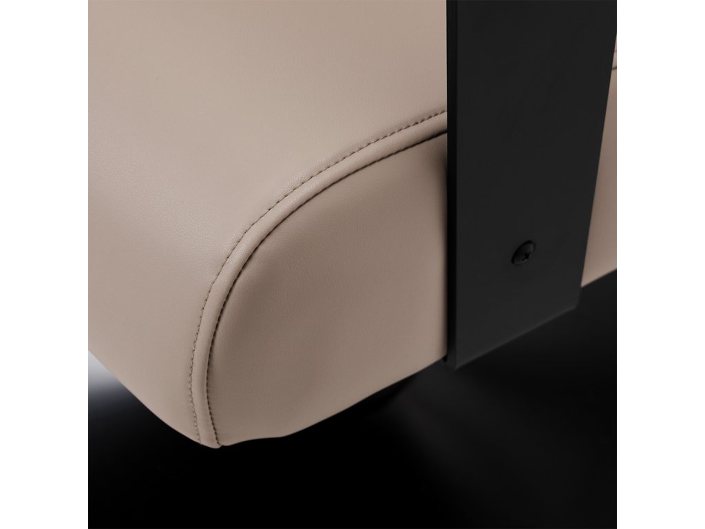Ein besonders praktisches Detail ist der Zwischenraum zwischen Sitzfläche und Rückenlehne, der die Reinigung des Arbeitsplatzes deutlich erleichtert. Haare können schnell und hygienisch auch aus schwer zugänglichen Bereichen entfernt werden, was die Vorbereitung für den nächsten Kunden beschleunigt.