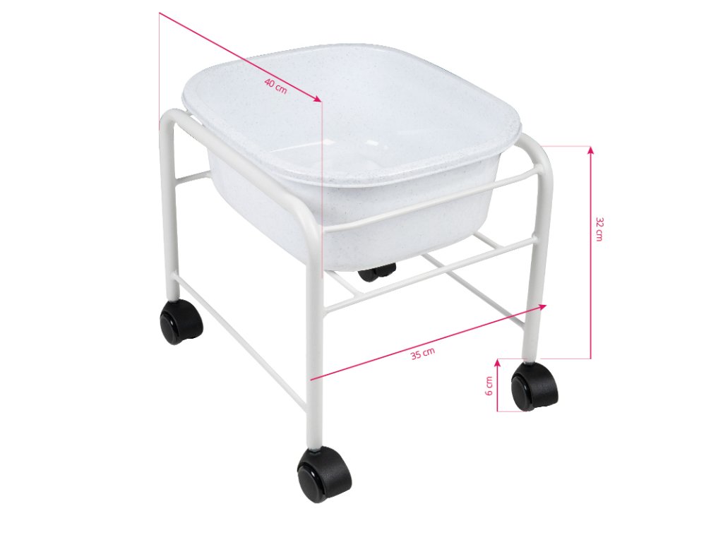 Die Fußbadewanne ist zum Einweichen der Füße vor der Pediküre geeignet. Die Fußbadewanne ist sehr komfortabel für die Kundin und Fußpflegerin.